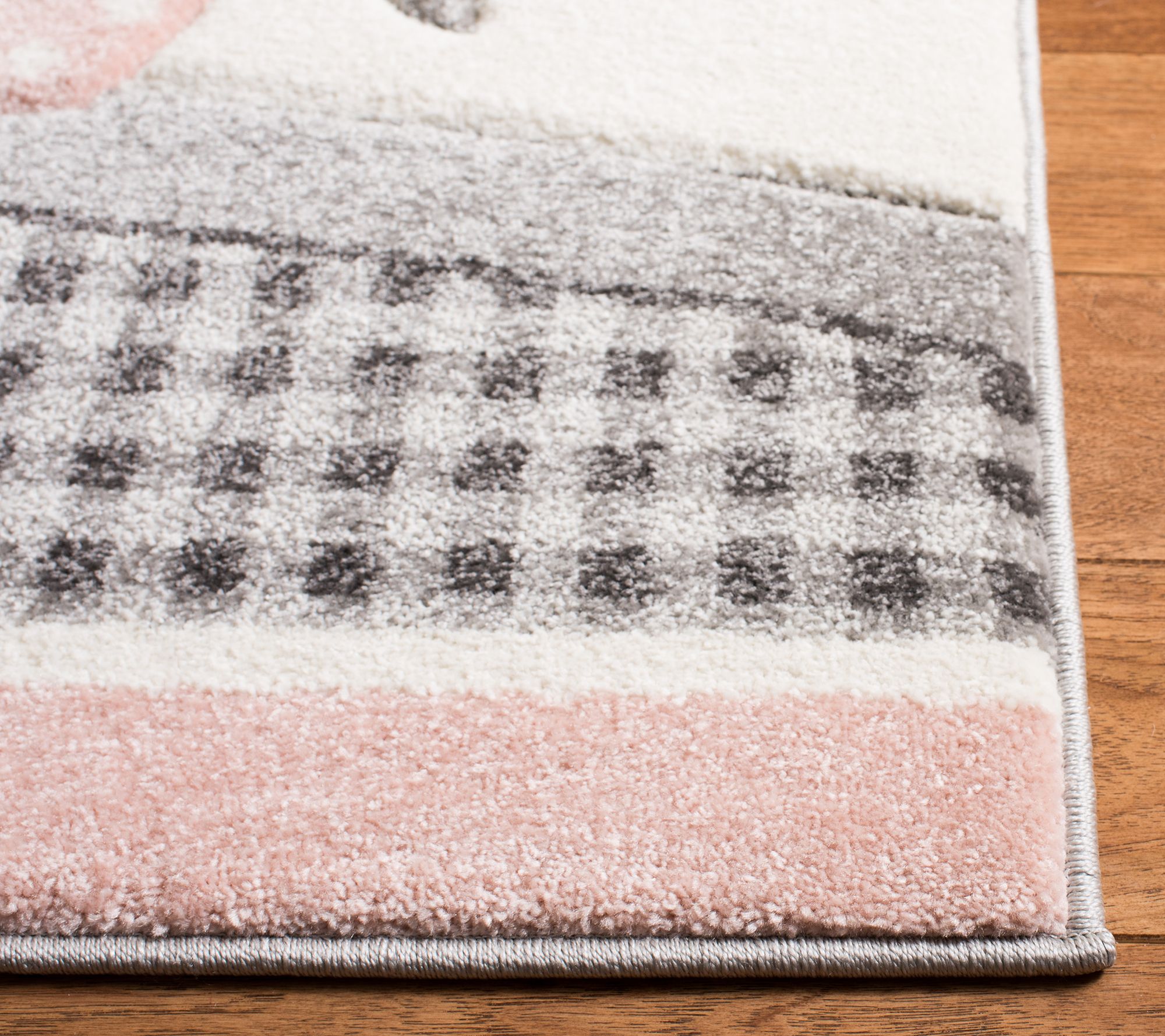 Gingham, polka dots, and floral prints combine in this oh-so-sweet Carousel Kids rug featuring a charming elephant and bird motif. From Safavieh.