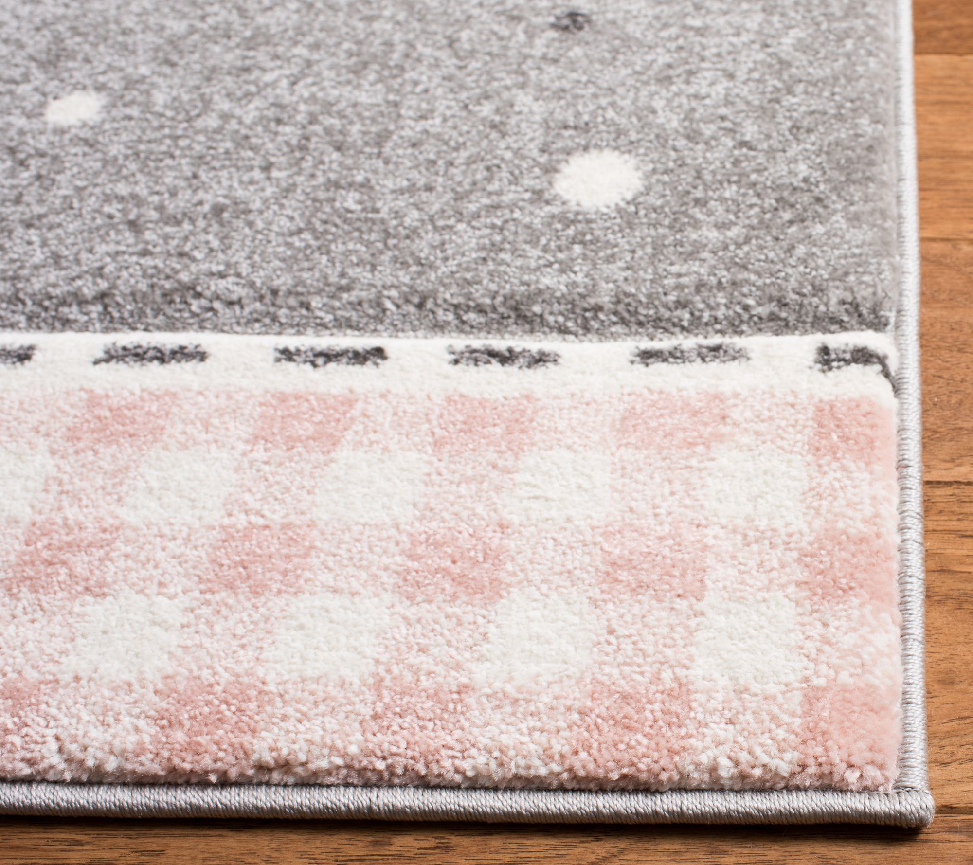 Fanciful and fun, this colorful and comfy storybook flamingo rug features pleasing pink, gray and ivory hues and a playfully etched design. Crafted from soft, yet durable synthetic yarns, this adorable, power-loomed rug makes a treasured addition to your child's room. From Carousel Kids.