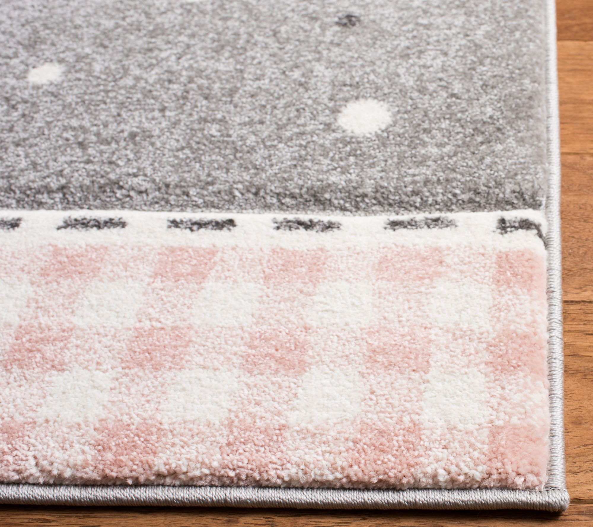 Fanciful and fun, this colorful and comfy storybook flamingo rug features pleasing pink, gray and ivory hues and a playfully etched design. Crafted from soft, yet durable synthetic yarns, this adorable, power-loomed rug makes a treasured addition to your child's room. From Carousel Kids.