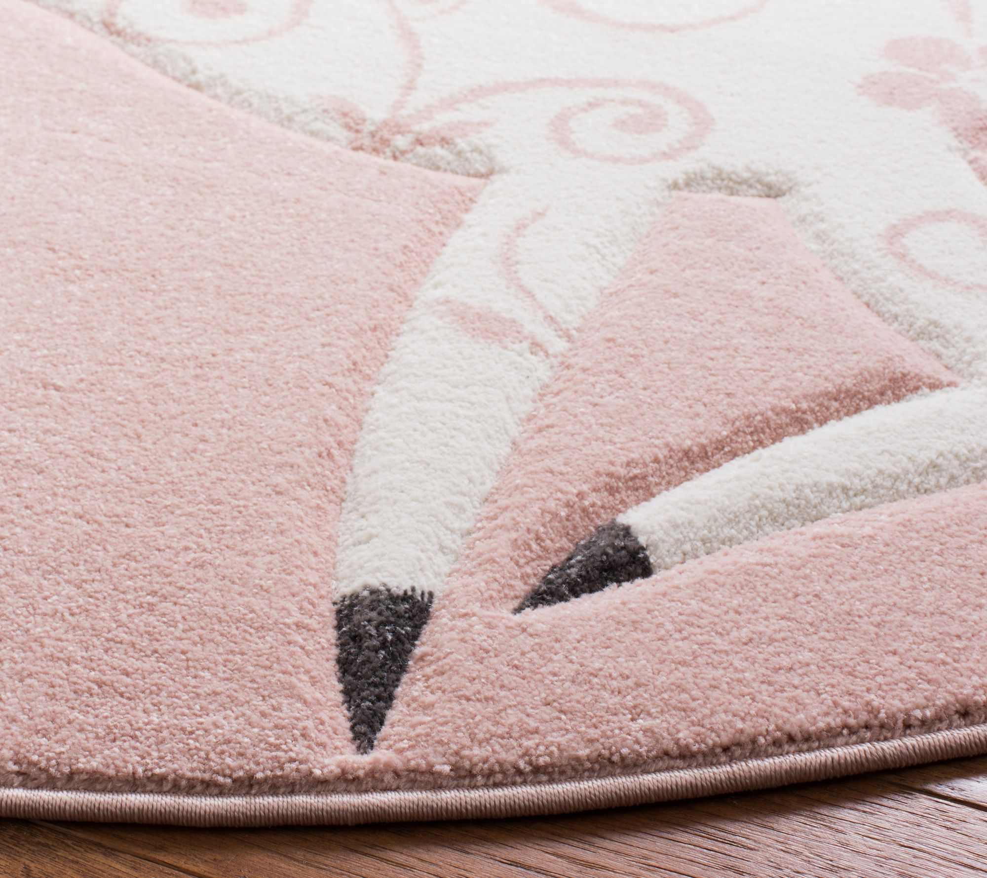 Fanciful and fun, this colorful and comfy storybook unicorn rug features pleasing pink, gray and ivory hues and a playfully etched design. Crafted from soft, yet durable synthetic yarns, this adorable, power-loomed rug makes a treasured addition to your child's room. From Carousel Kids.