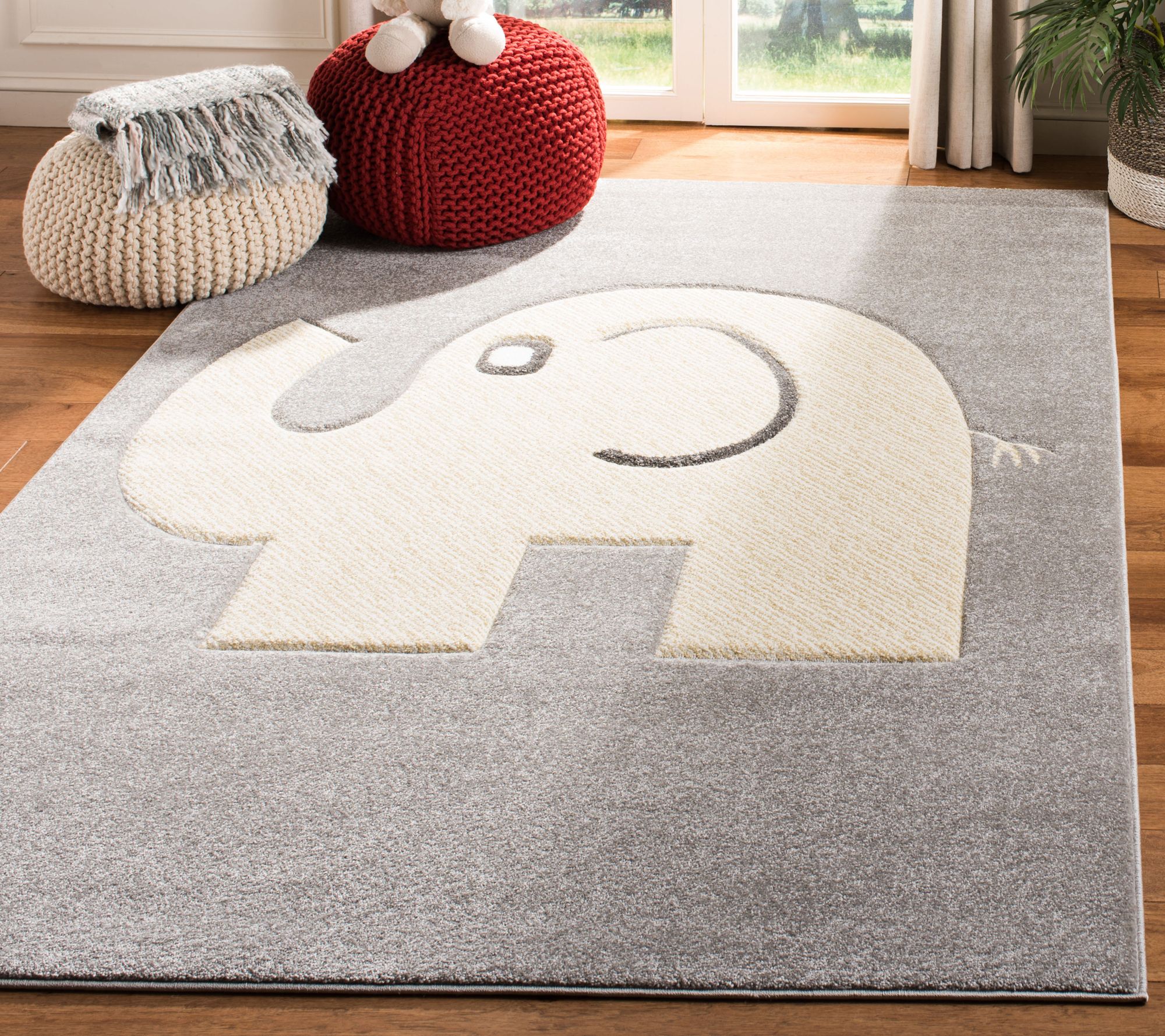 Fanciful and fun, this sweet, comfy storybook elephant rug features pleasing, decor-matching gray and ivory hues and a playfully etched design. Crafted from soft, yet durable synthetic yarns, this adorable, power-loomed rug makes a treasured addition to your child's room. From Carousel Kids.