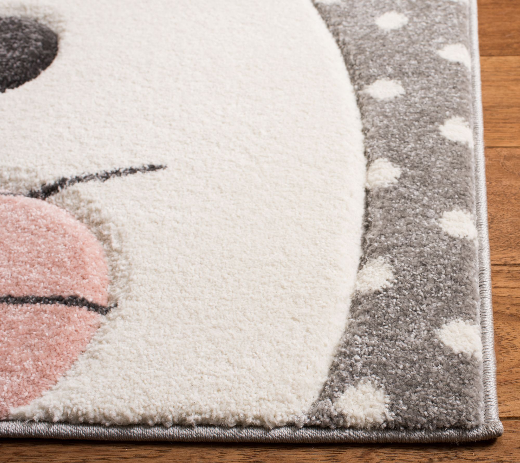 Playful patterns, charming colors, and etched designs turn the childhood motifs of this power-loomed rug into a flooring focal point, while also providing a soft landing for busy little feet. From Carousel Kids.