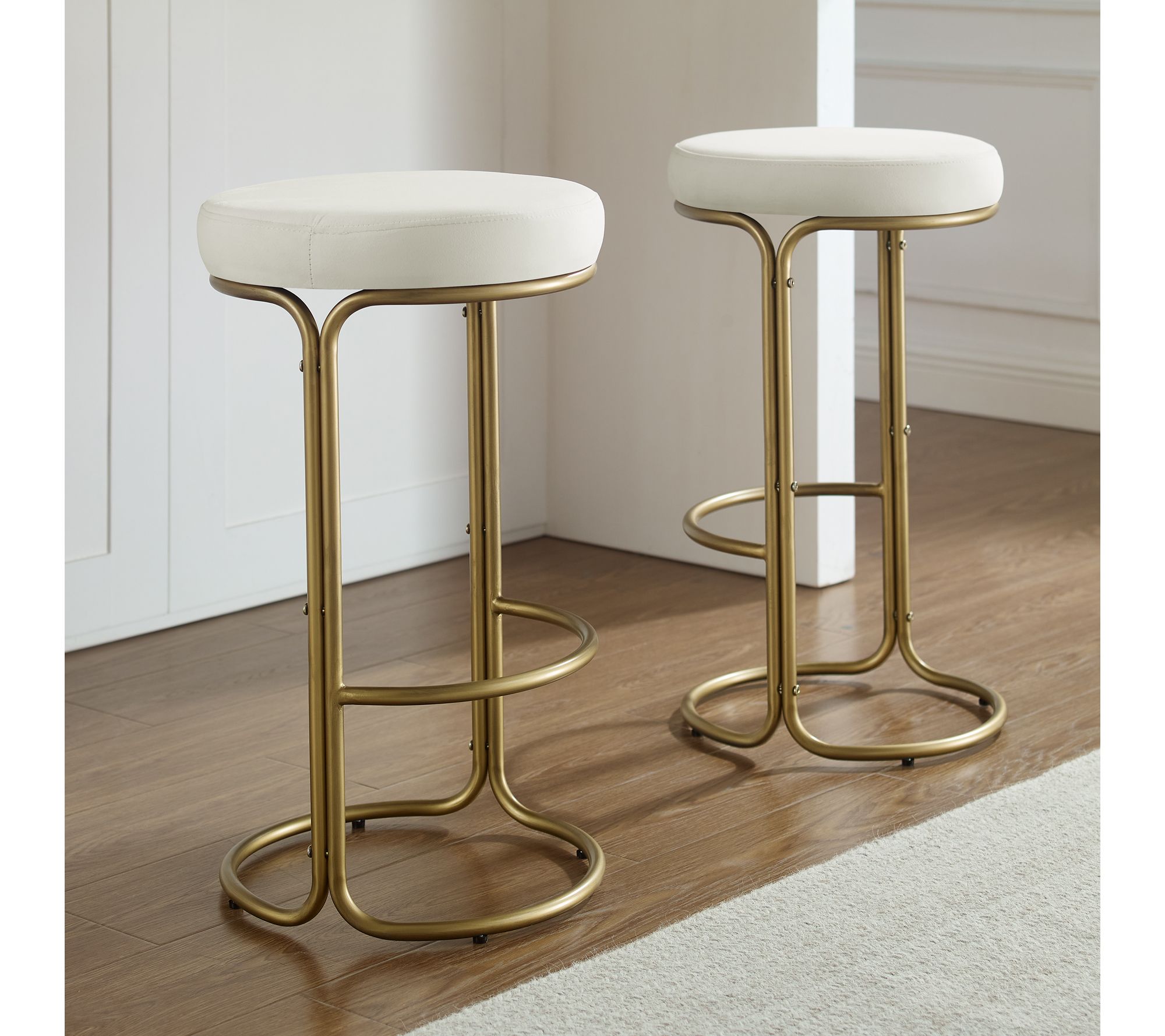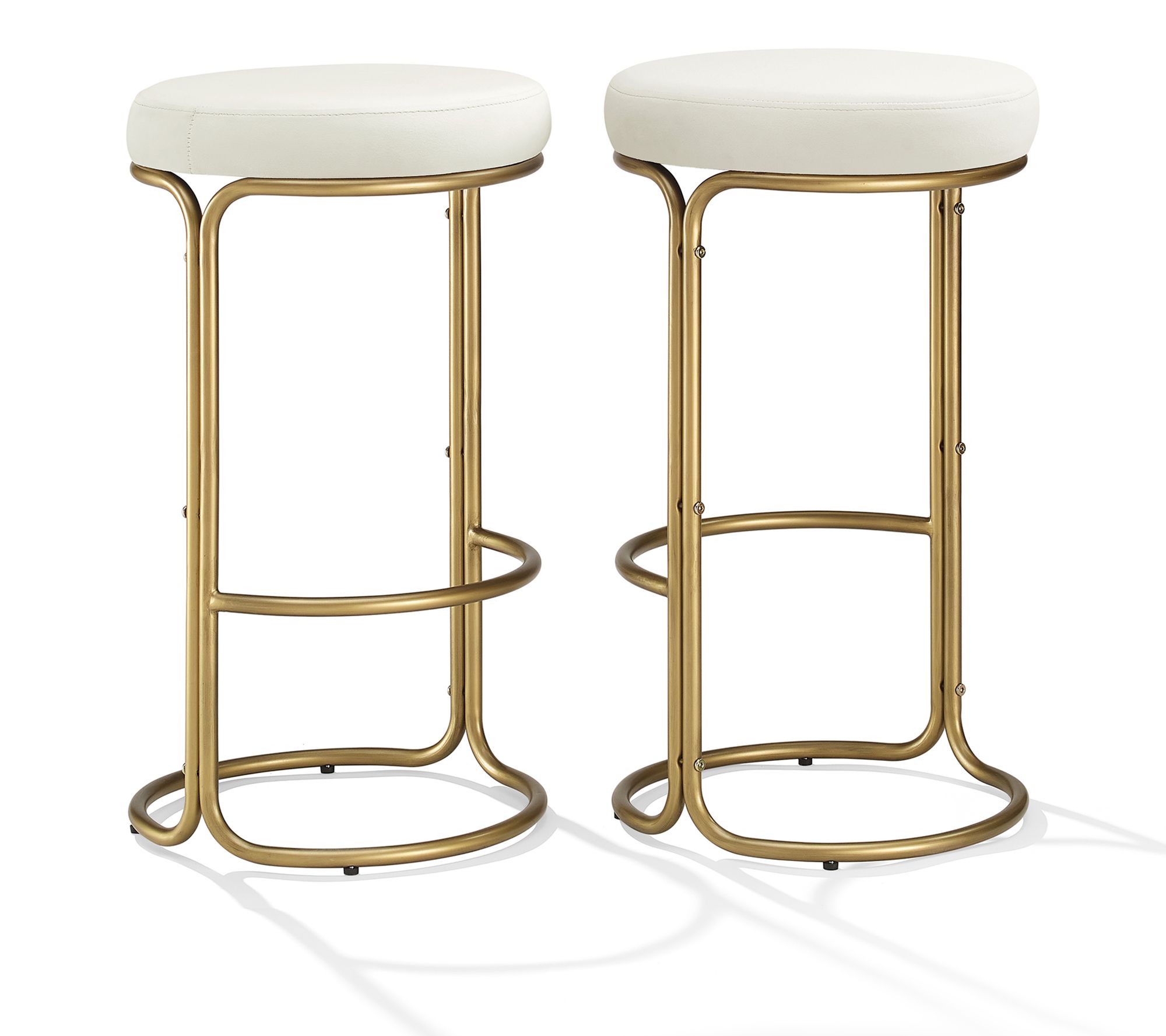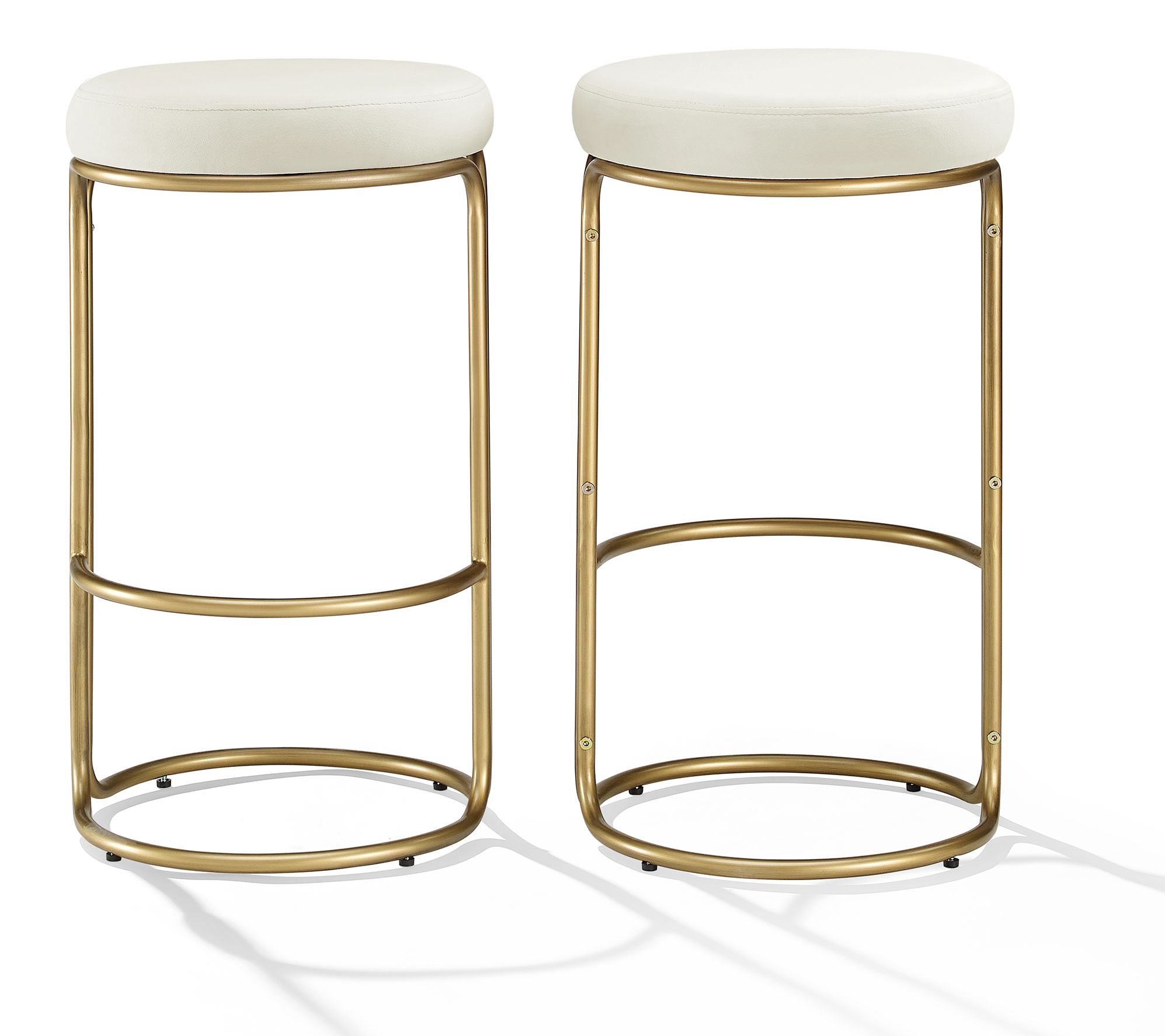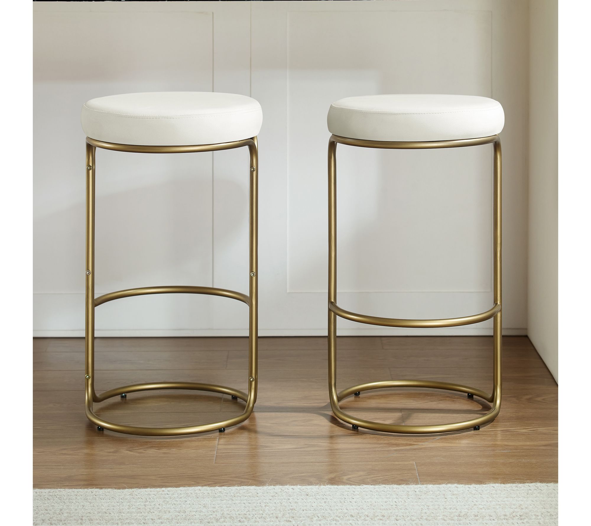 Elevate your kitchen island or breakfast bar with the Carson 2-piece counter height bar stool set. Featuring modern gold steel frames and plush creme velvet seats, these stools add a touch of glamour to any space. From Carson.