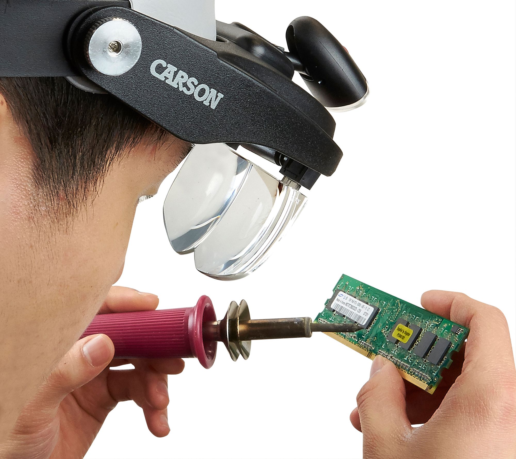 See your projects in a new light with this hands-free LED magnifier. Adjust the headband for a comfortable fit or remove the lamp to use separately from the magnifying visor. From Carson Optical.