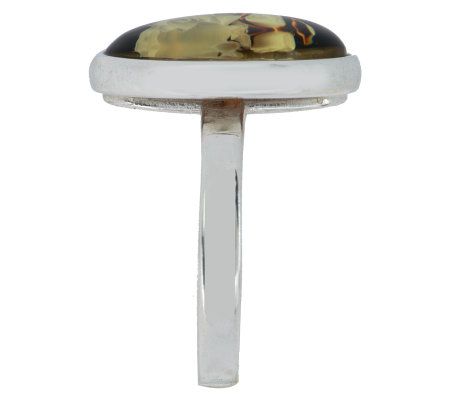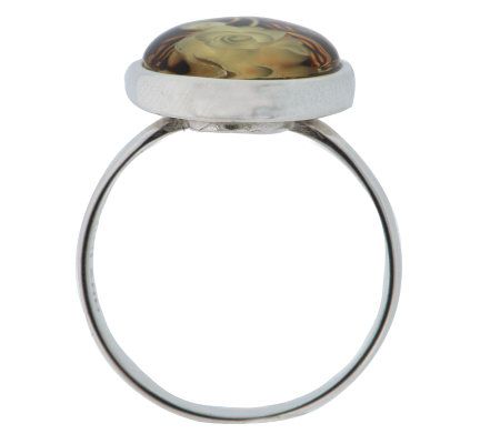 Carved Oval Baltic Amber Floral Design Sterling Ring