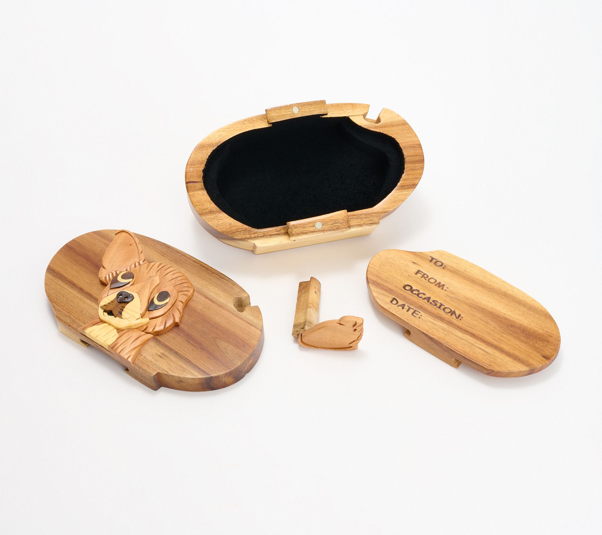 • To, From, Date, and Occasion burned into inside lid cover to be customized