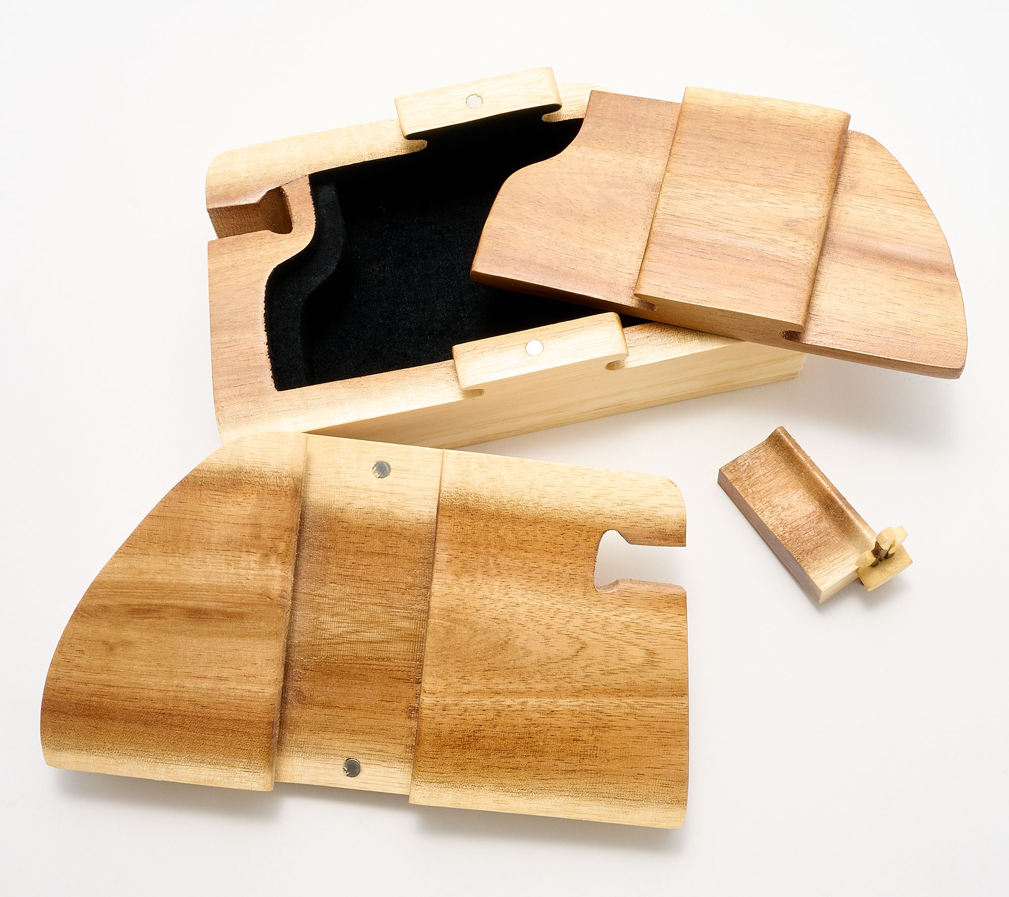 Enhance your collection of keepsakes with this beautifully crafted puzzle box, fashioned to resemble a golf cart. This piece isn't just striking; it conceals a hidden storage area secured with a magnetic closure, perfect for safeguarding your cherished treasures. Each one tells its own story with unique markings on the inside lid cover, waiting for you to personalize. From Carver Dan's.