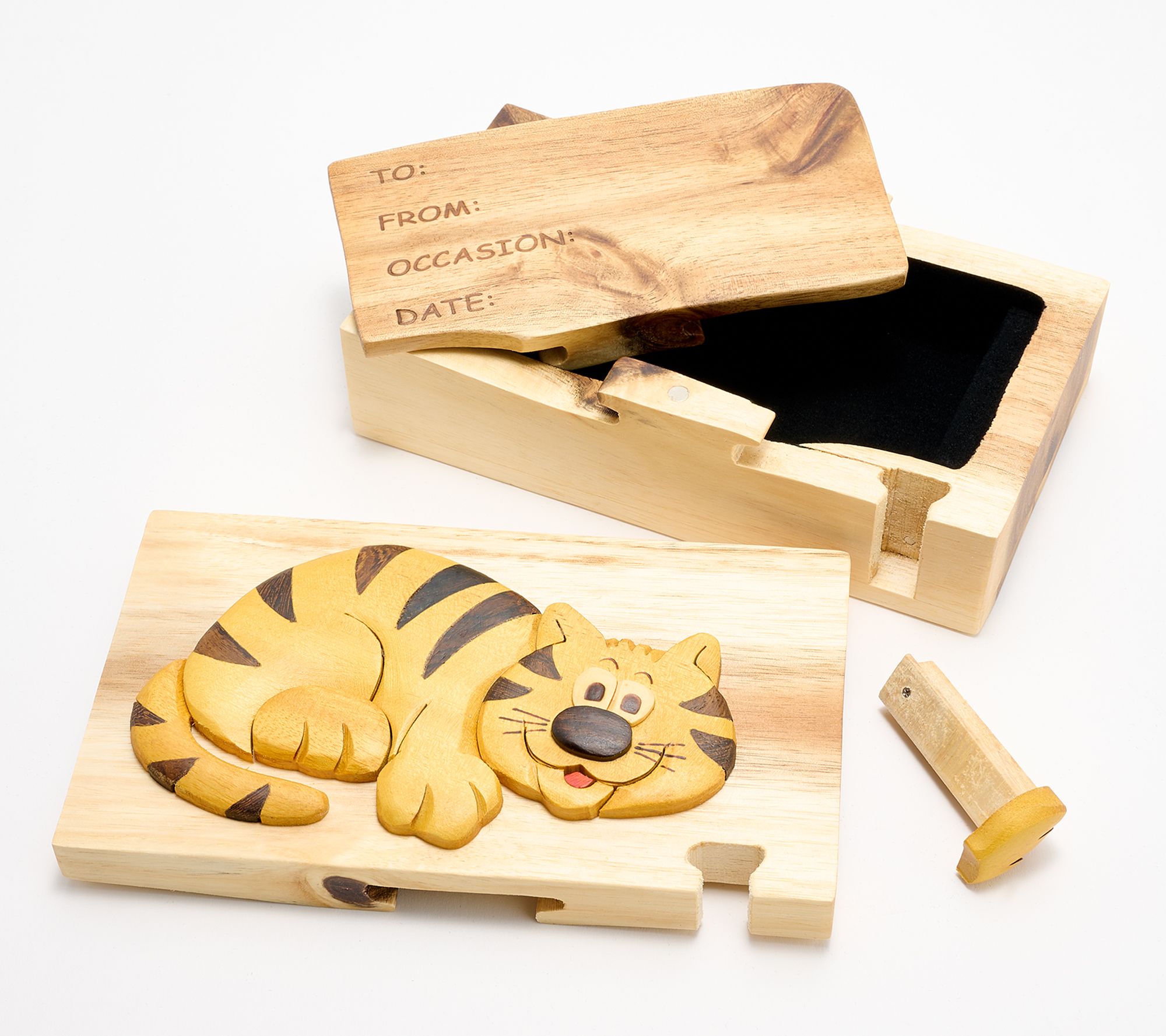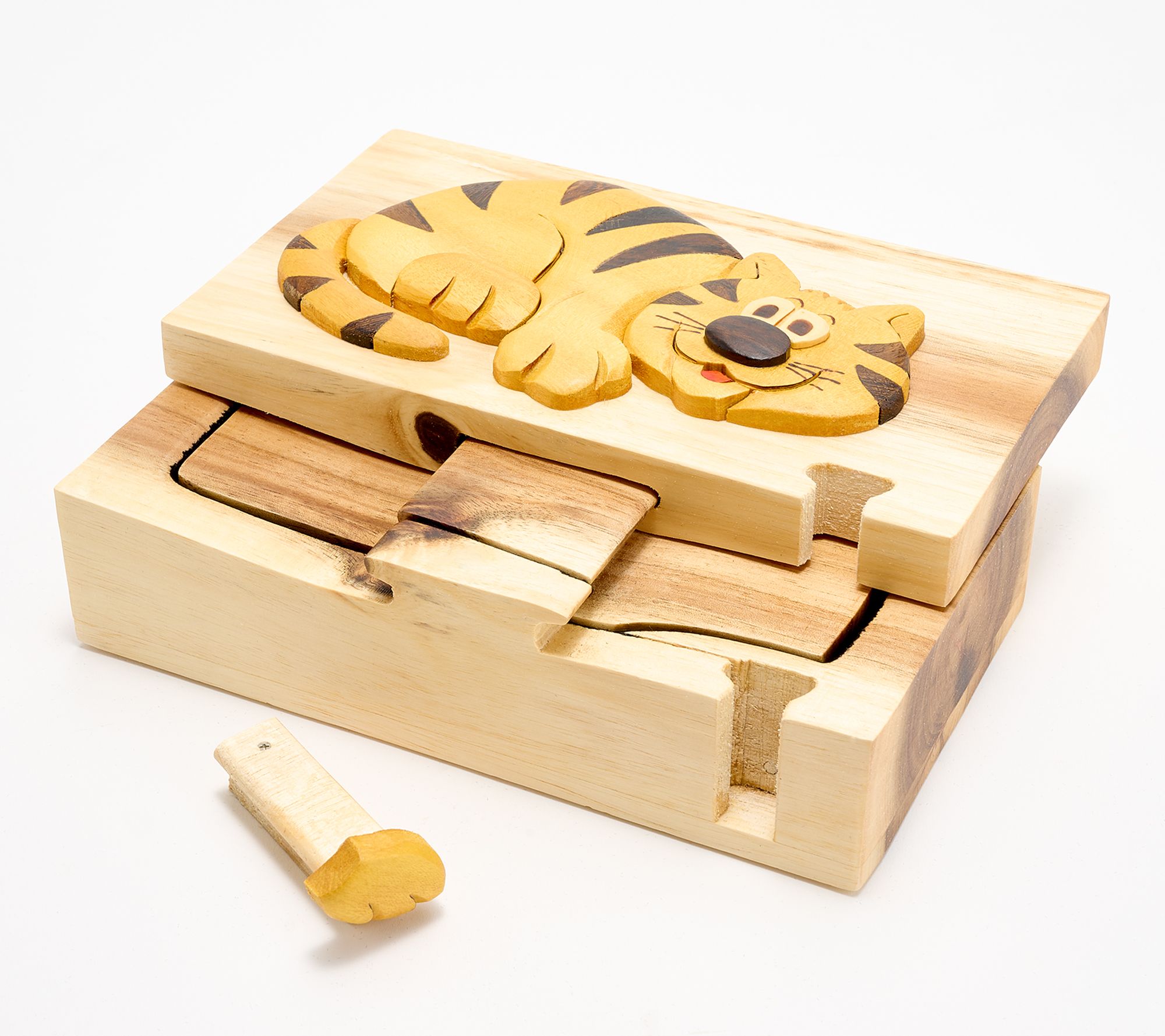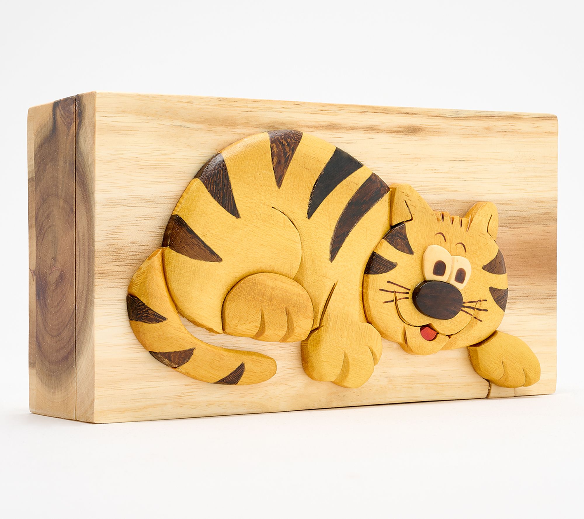Carver Dan's Handcrafted Crazy Cat Puzzle Box