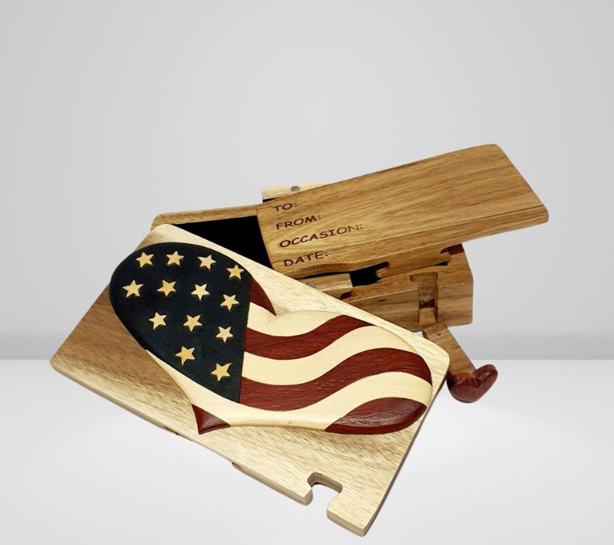 Carver Dan's Heart of Flag Puzzle Box with Magnetic Closure