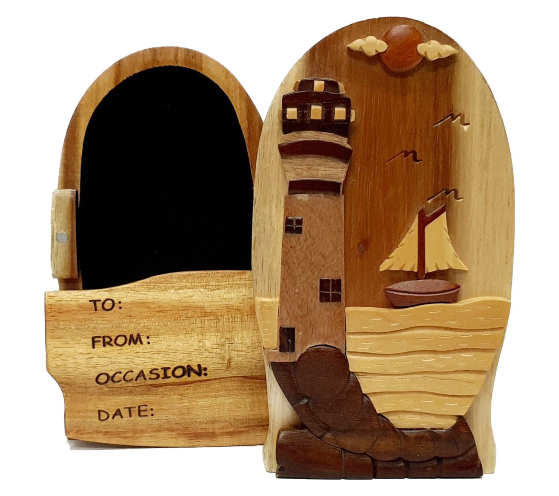 • To, From, Date, and Occasion: burned into inside lid cover to be filled in