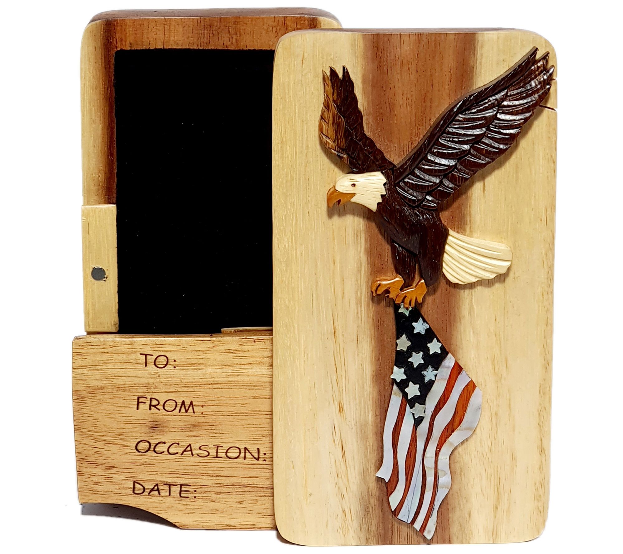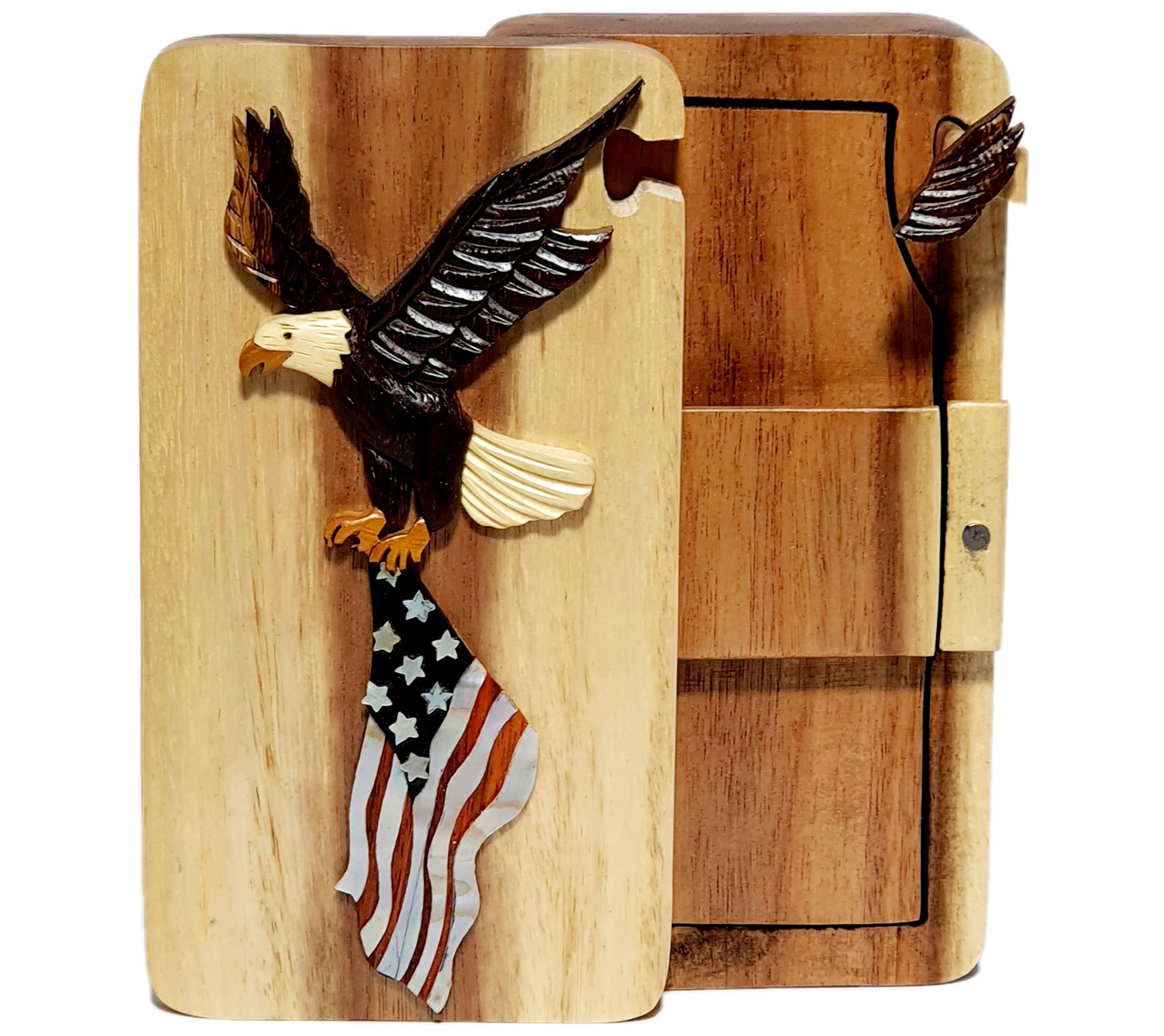 Carver Dan's Mother of Pearl Eagle & Flag Puzzle Box