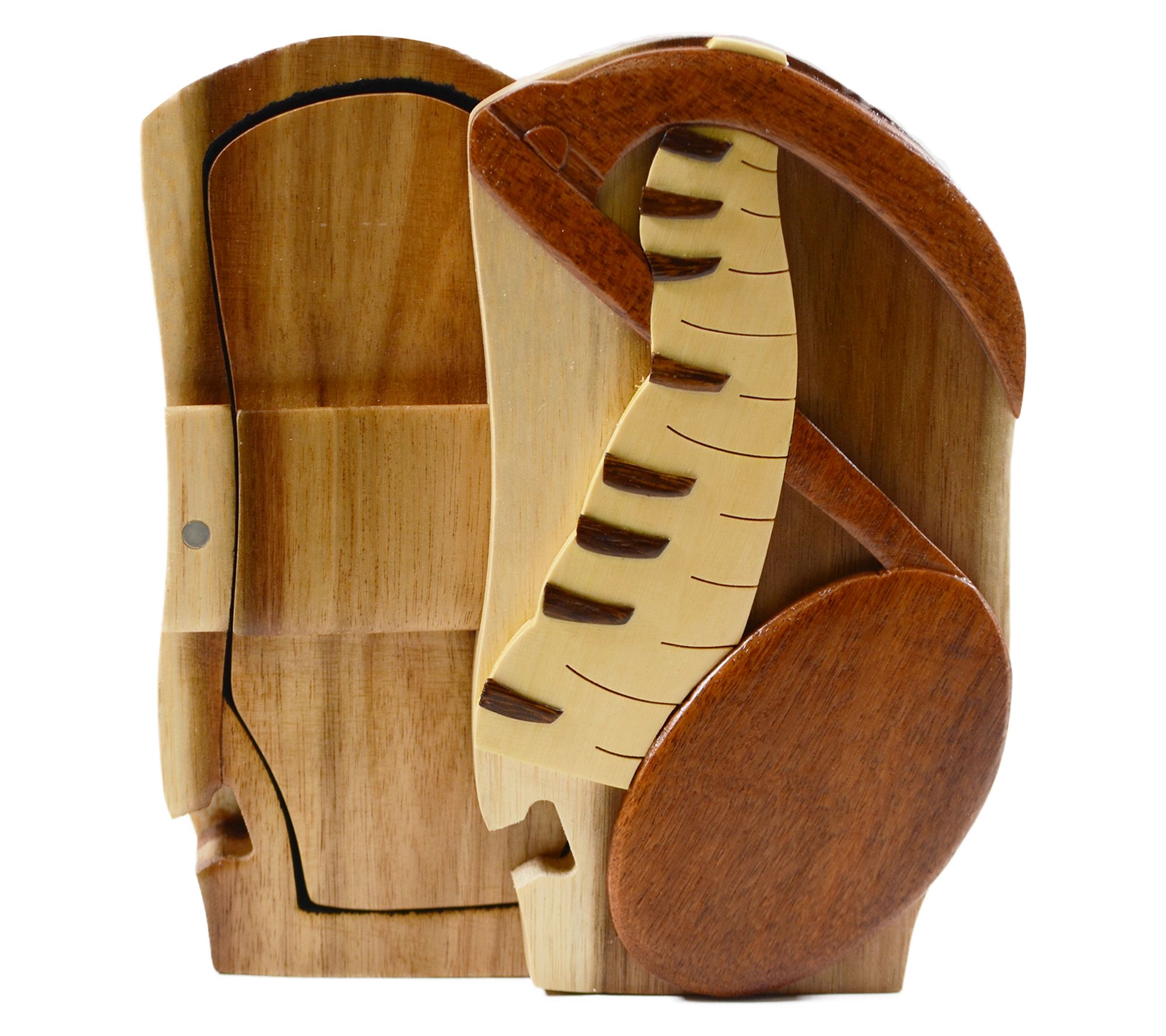 A clever way to give someone a gift card, money, or small item (no need to wrap!), this puzzle box can be reused by the recipient to tuck away trinkets, tiny treasures, jewelry, and whatever keepsakes they want to keep safe. The intricate design is beautifully crafted from hardwoods and features a hidden storage area with a magnetic closure. From Carver Dan's.