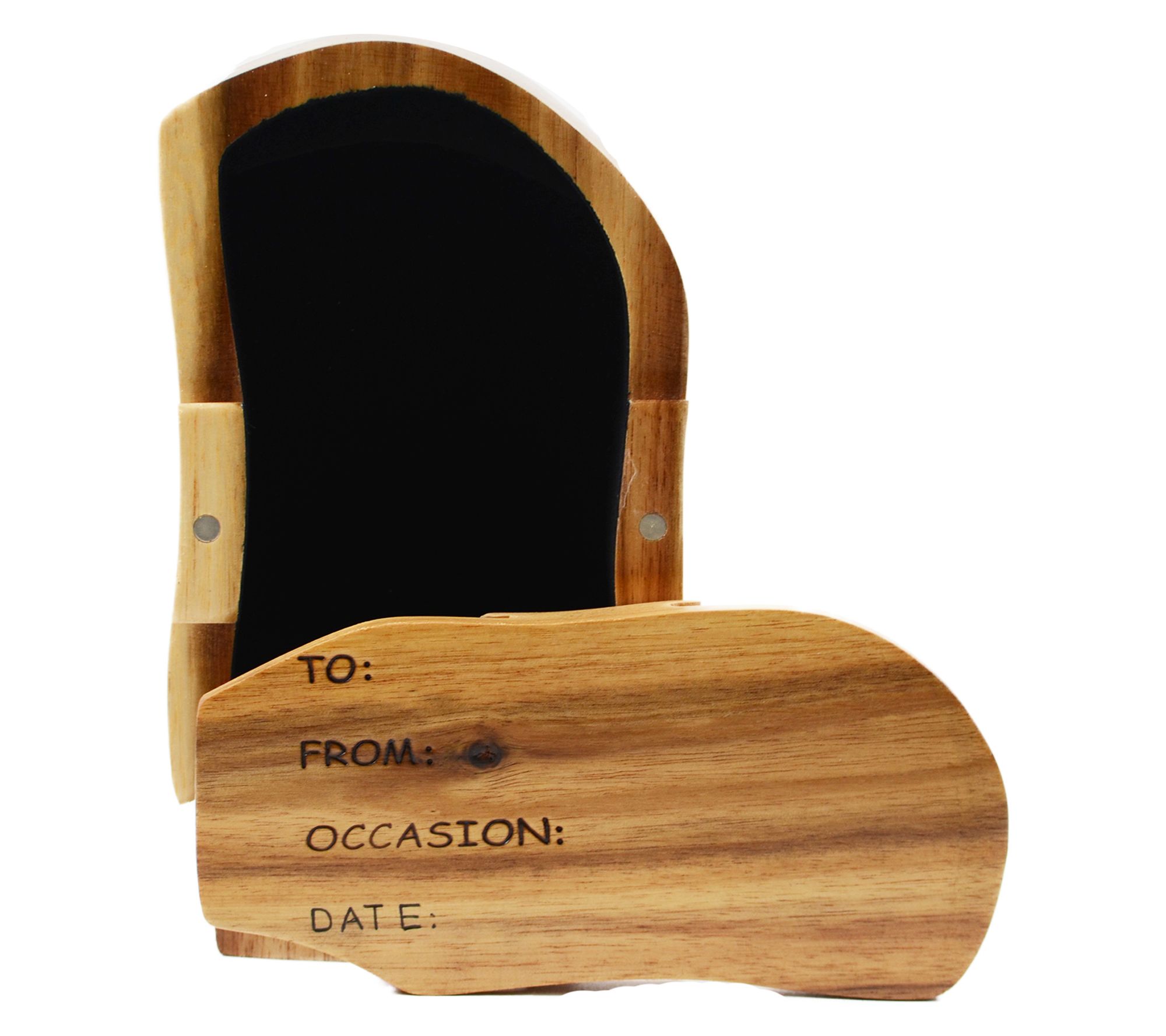 • To, From, Date, and Occasion: burned into inside lid cover to be filled in