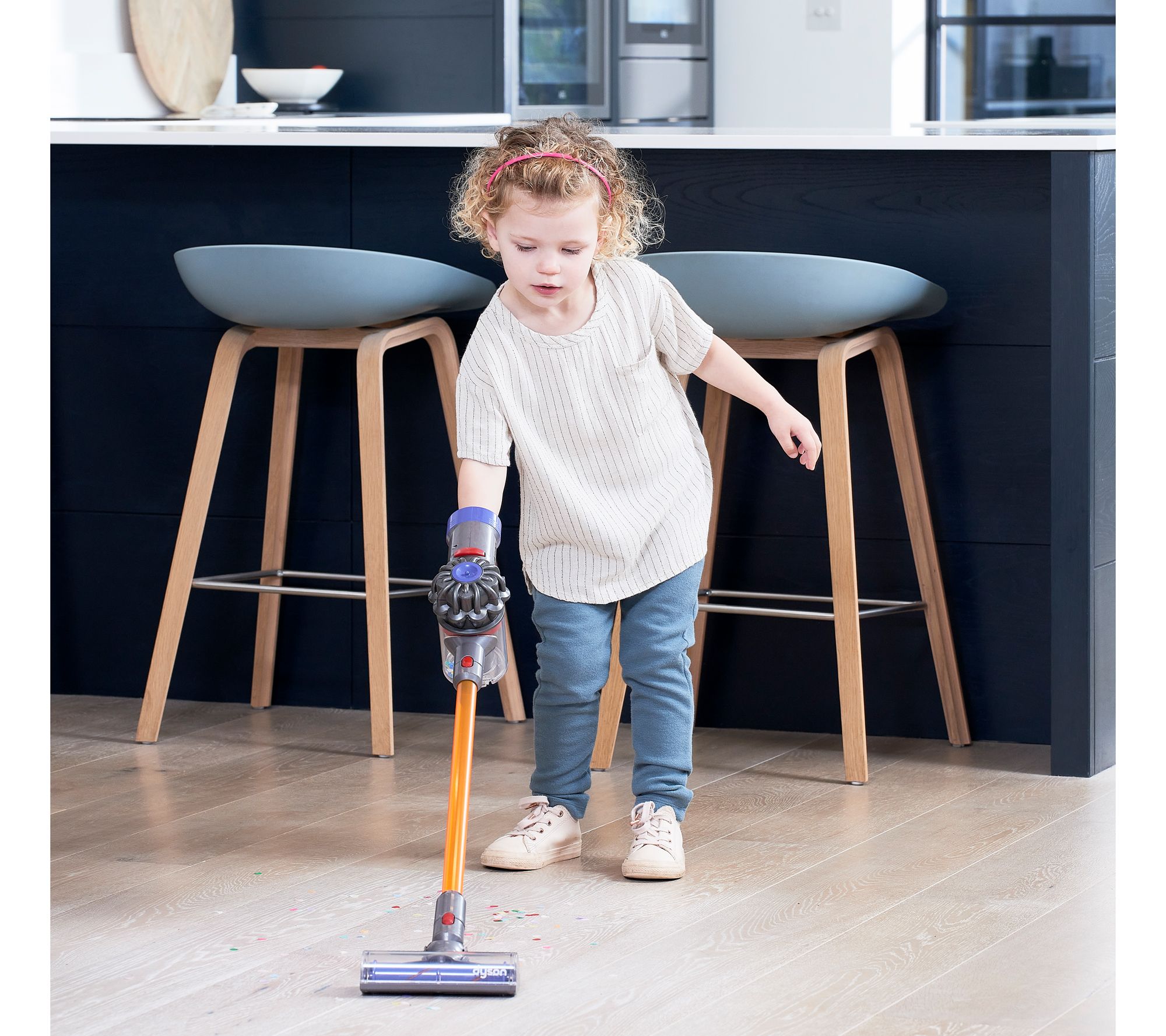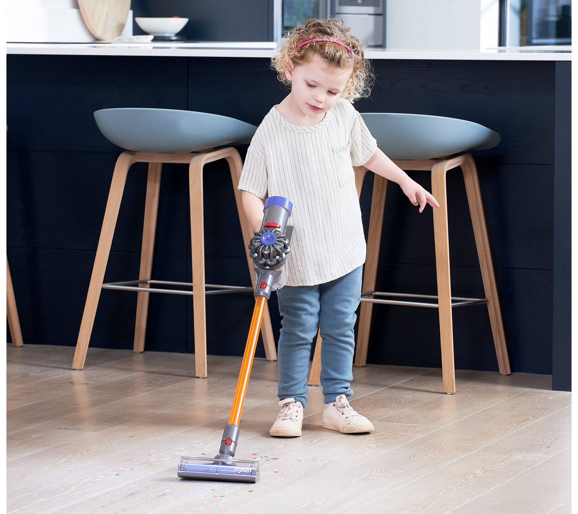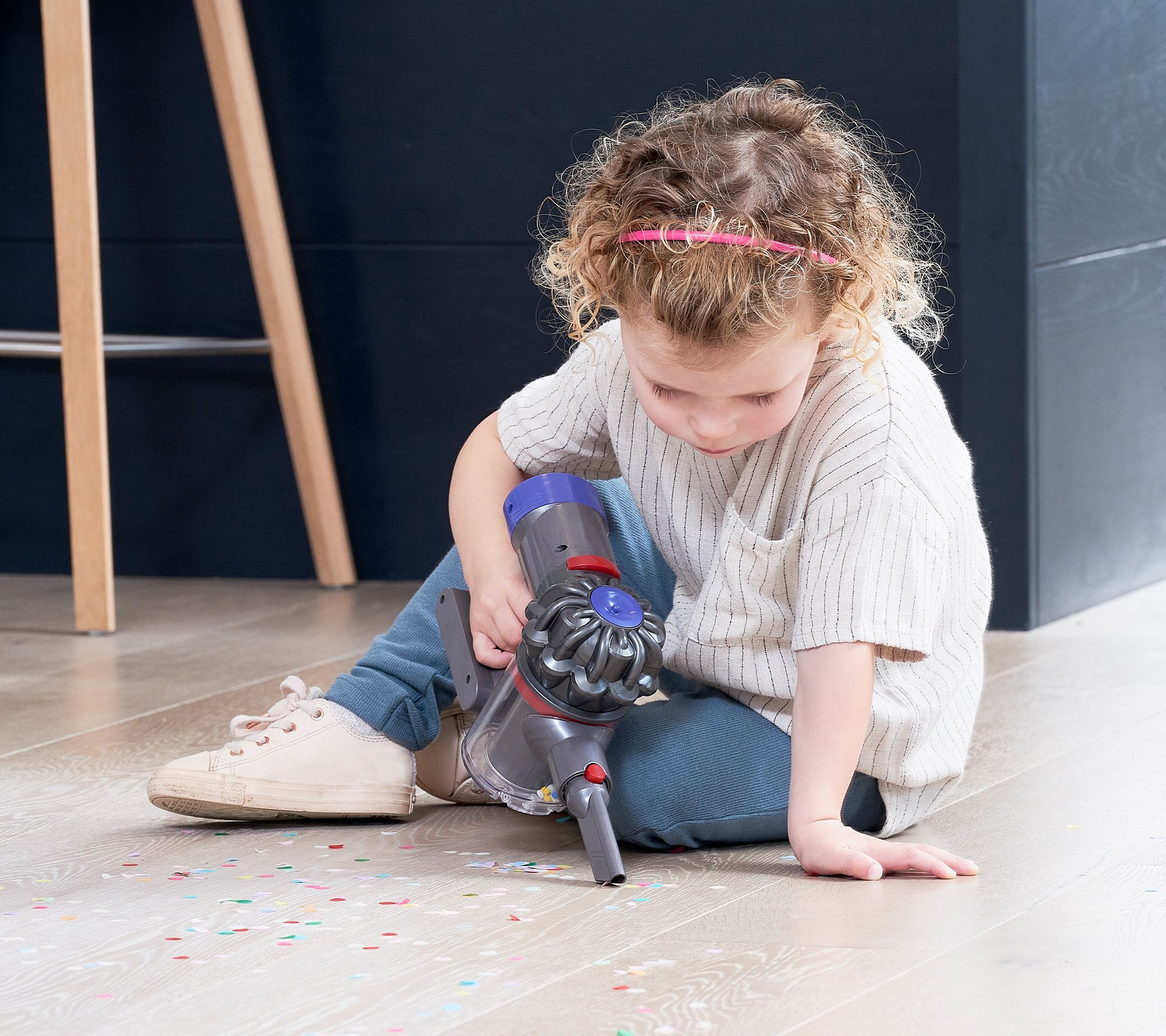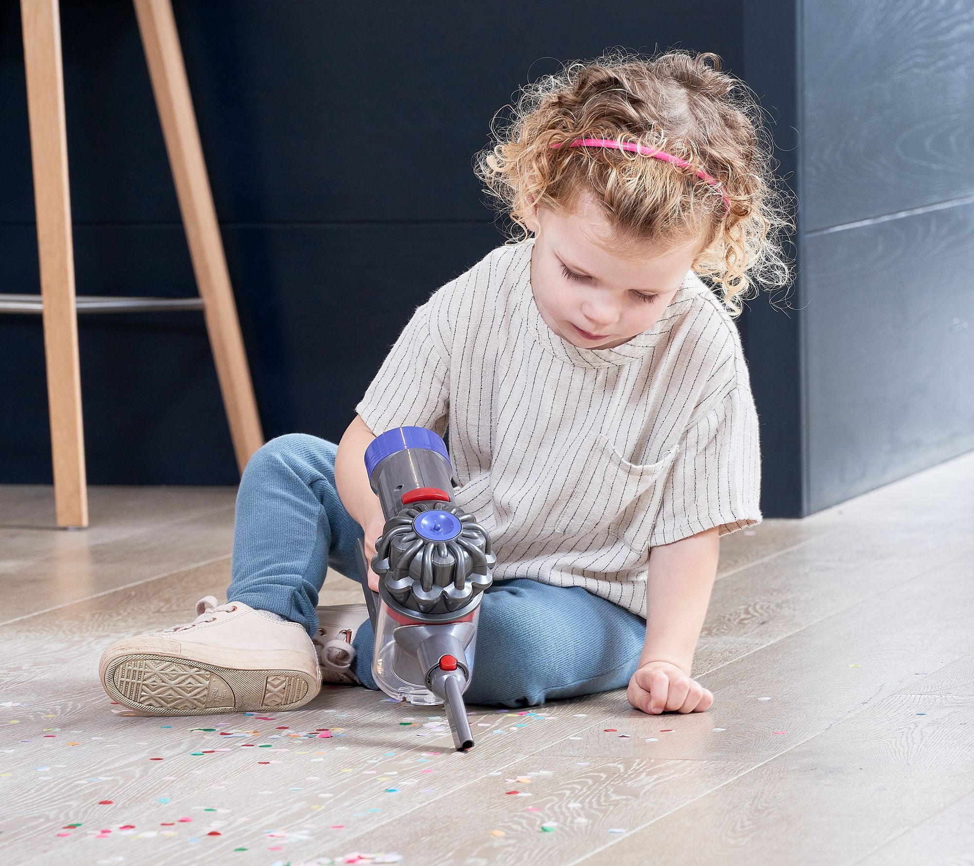 Mimicking a real Dyson vacuum down to the last detail, your kiddo will get sucked into the excitment of the simulated cyclone action of this cordless toy vacuum! It looks and sounds just like the real deal, plus it works! Light suction picks up small pieces of paper and lightweight debris, so chores don't seem like a bore. From Dyson Toys.