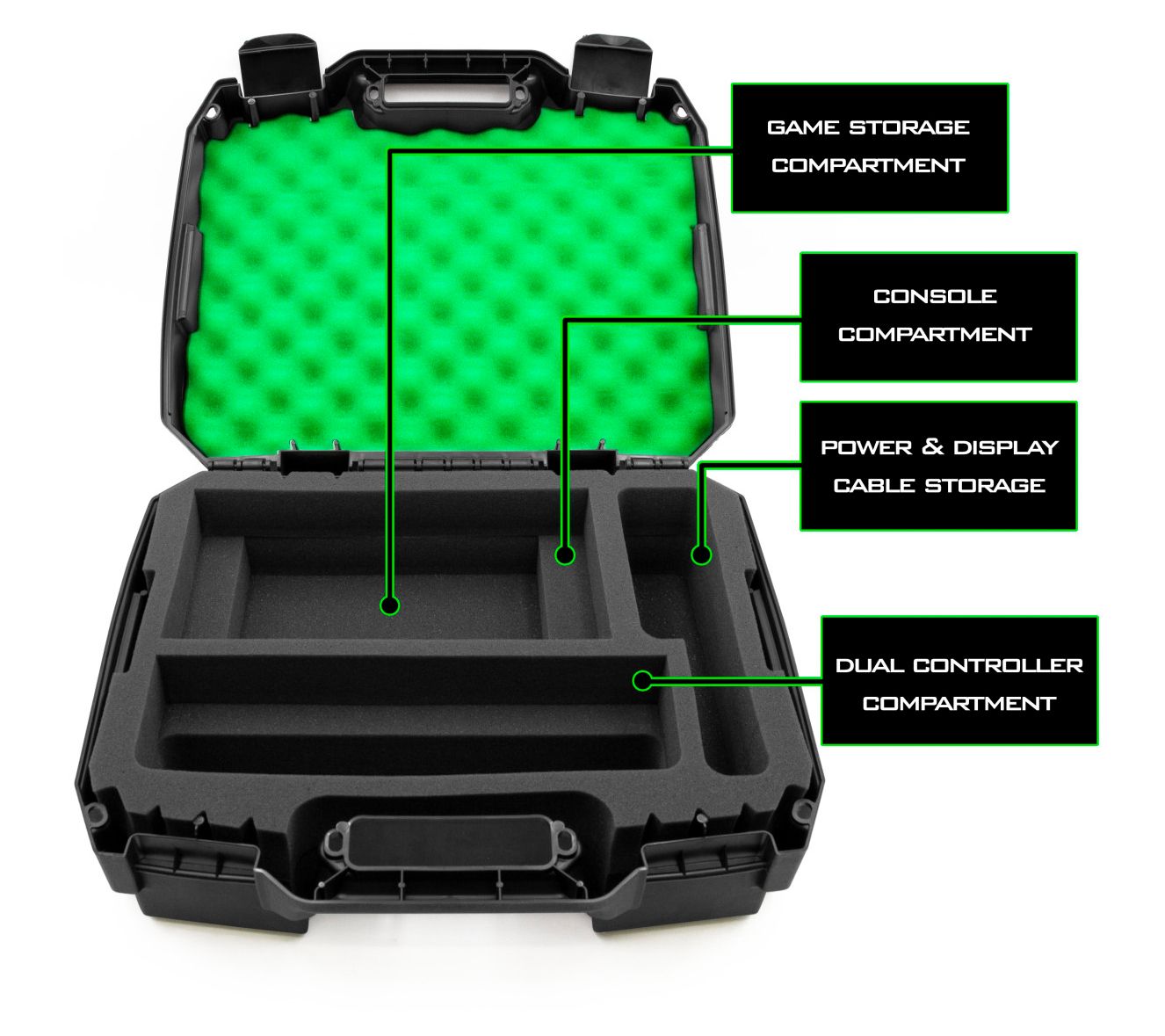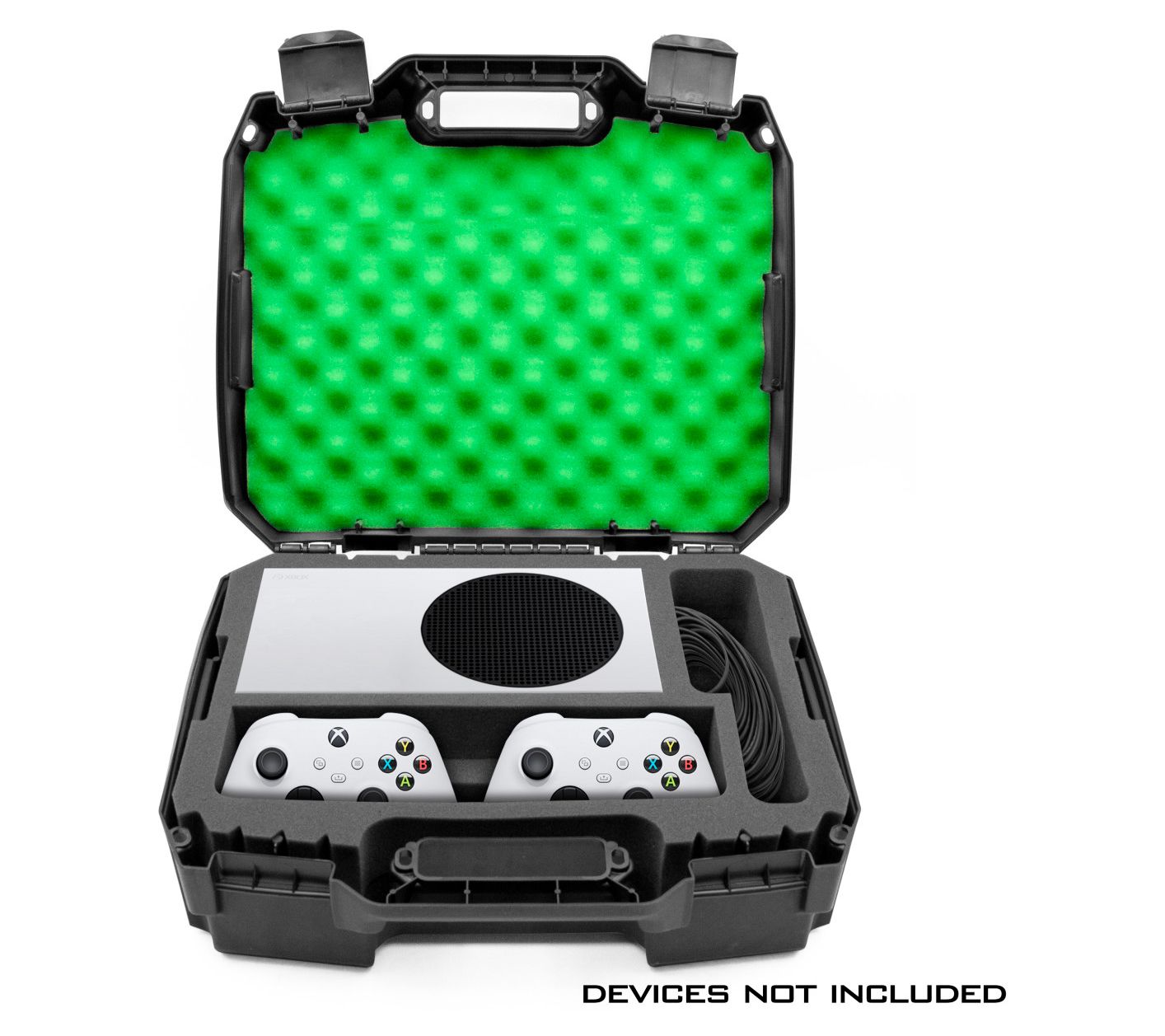 Perfect for gaming on the go, this hard-shell case protects your Xbox Series S game console and controllers (not included) from scrapes, nicks, and scratches. From Casematix.