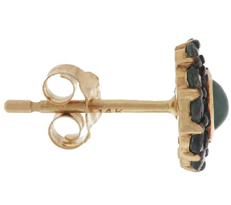 Circular sensation. These round stud earrings glow with cat's-eye alexandrite cabochons in the center. A series of round green alexandrite gemstones shape the border.