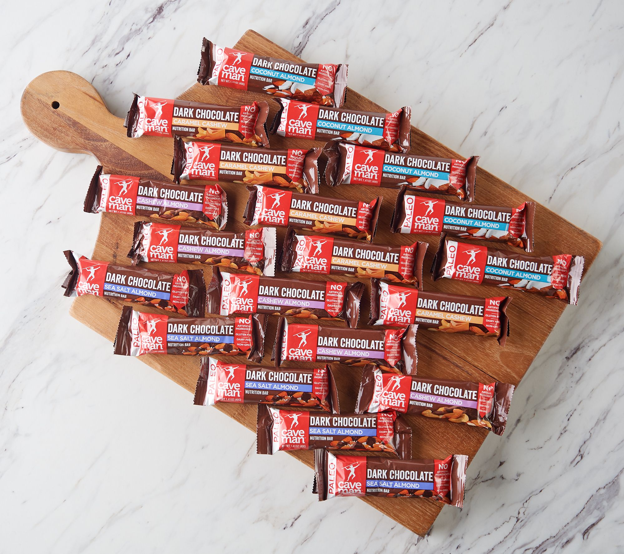 Sweet, salty, nutty, crunchy -- tantalize your taste buds with these chocolate and nut bars for a healthy, anytime snack. From Caveman Foods.