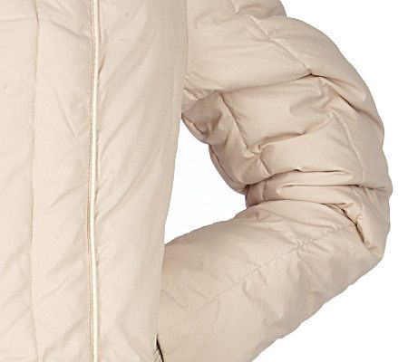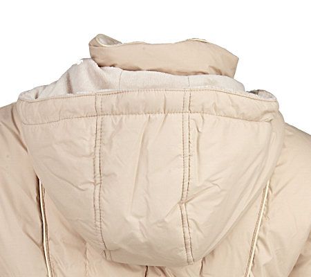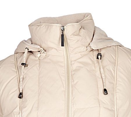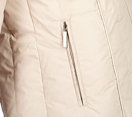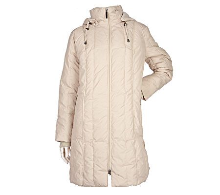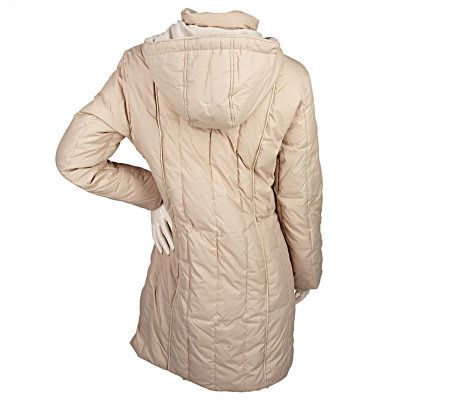 Fight frost fashionably in this quilted zip-front coat with piping details. Slimming down-filled vertical panels offer cloud-like comfort as they create a barrier between you and the elements. From Centigrade(R) Outerwear.