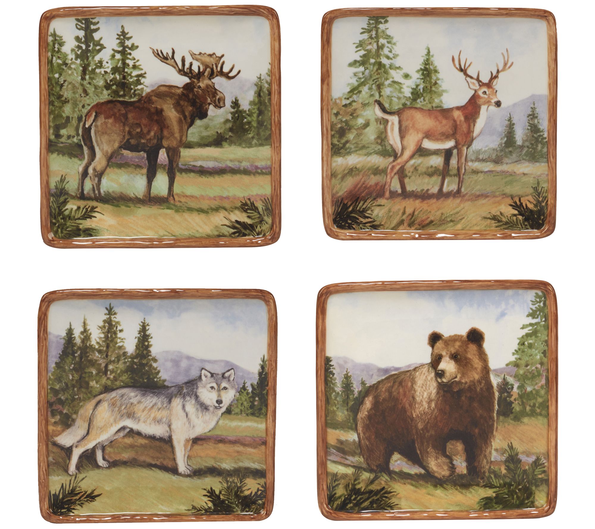Get back to nature with the breathtaking wildlife scenes on these Mountain Summit canape plates. A charming addition to your home or cabin, they add rustic appeal to any table. From Certified International.