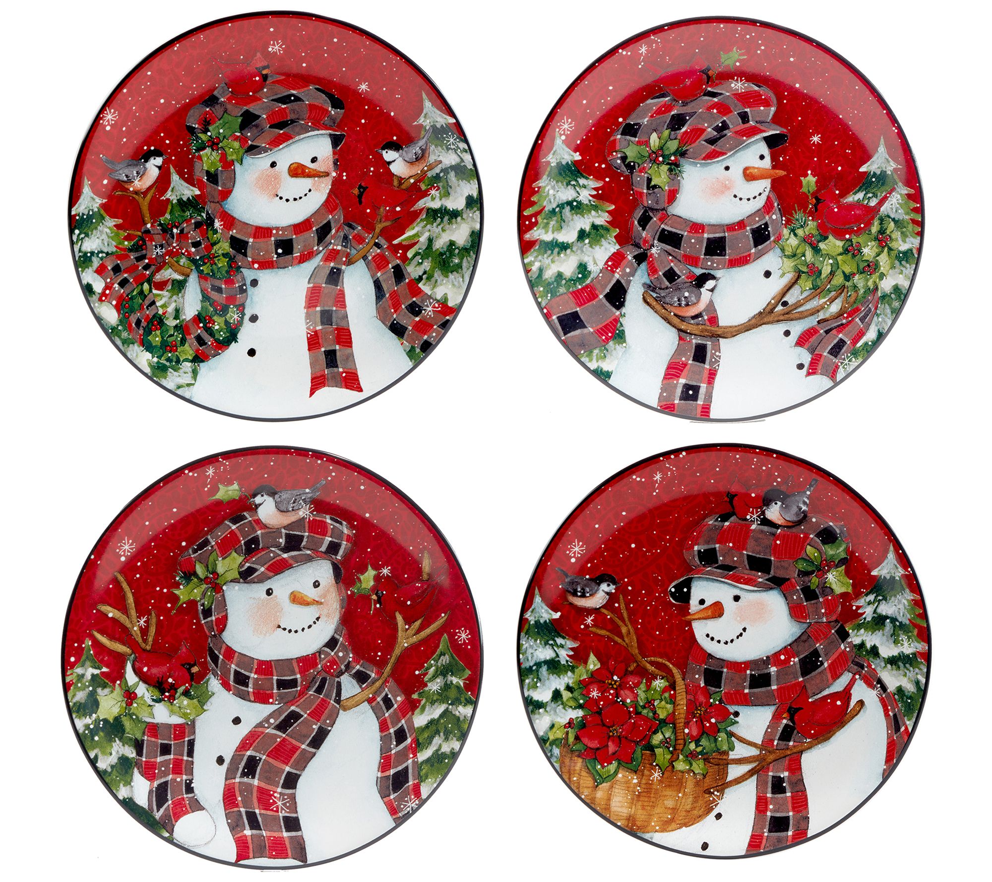 Certified International Set of 4 Lodge Snowmanessert Plates
