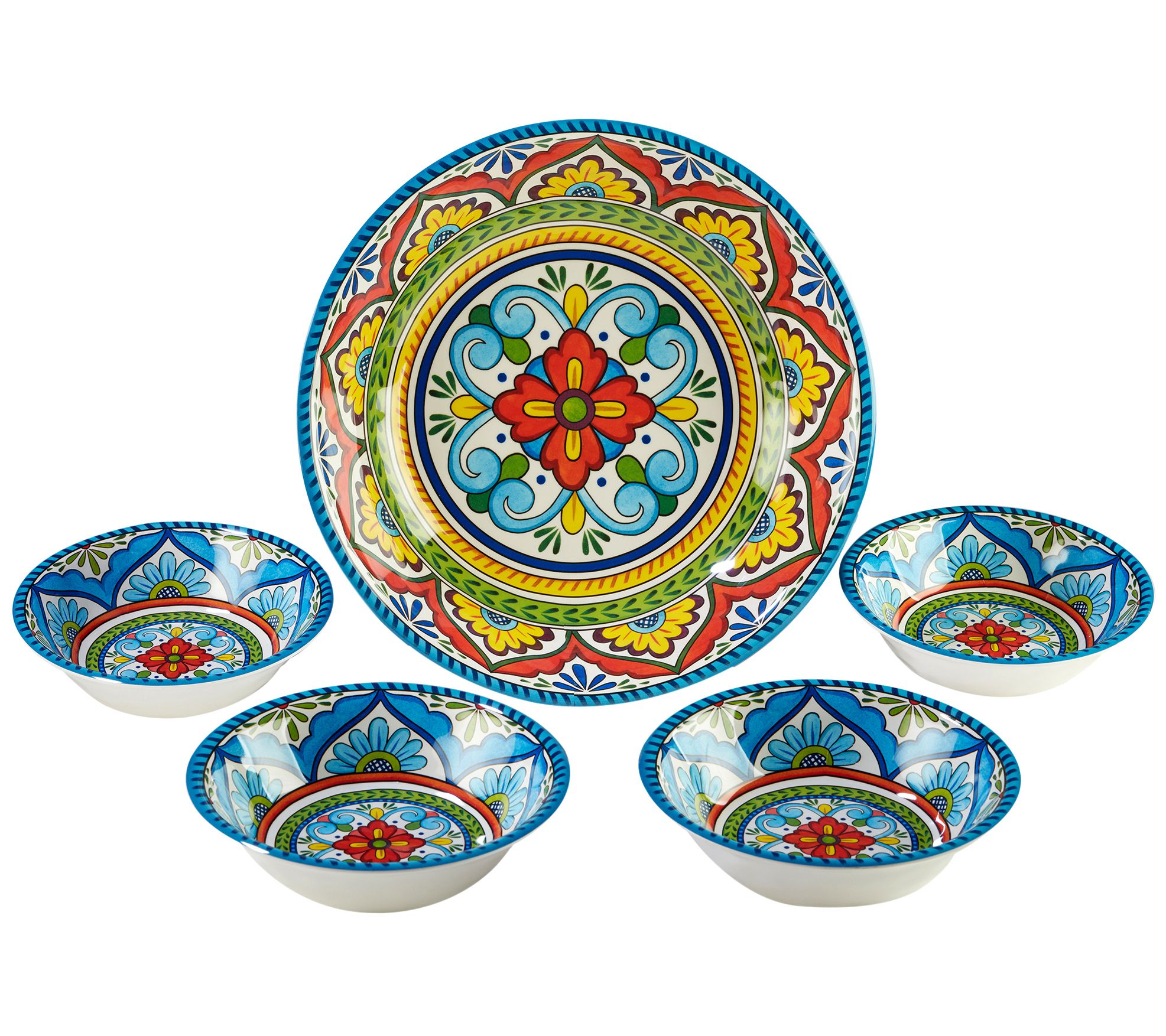 Inspired by traditional Talavera-style pottery, this beautiful five-piece Seville salad serving set is a fun and colorful way to liven up any dining occasion. From Certified International.