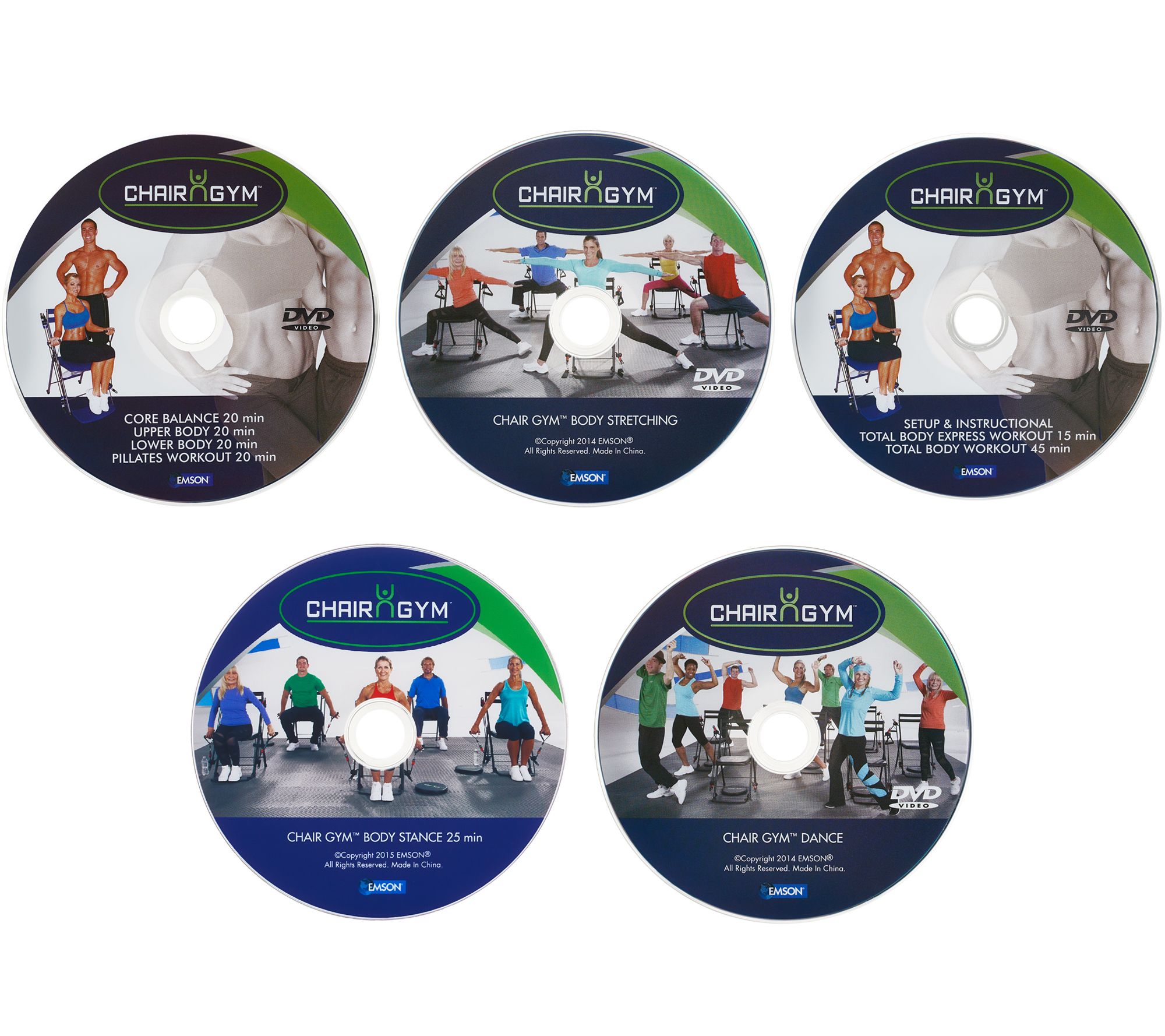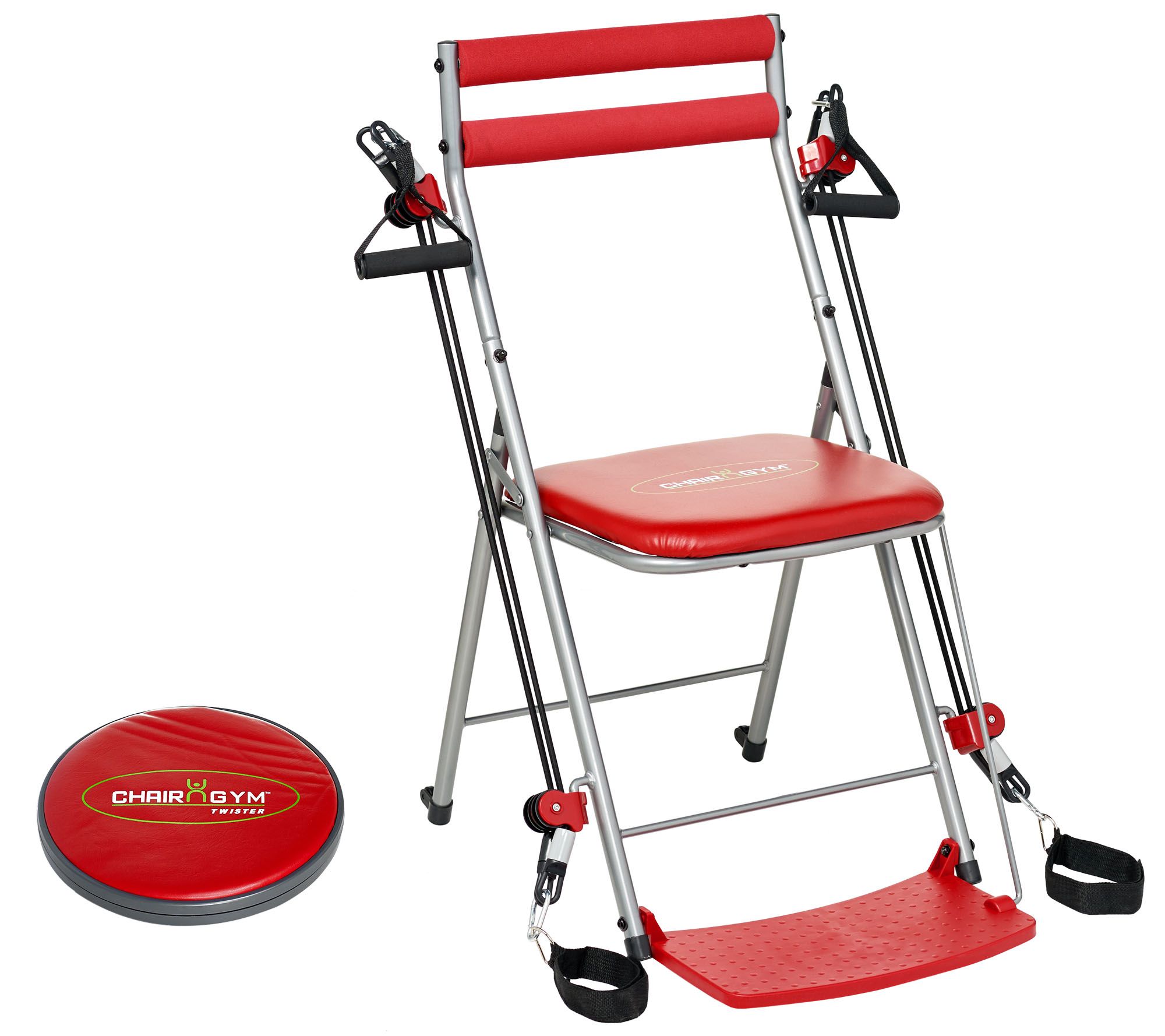 Includes Chair Gym with twister seat, workout guide, five DVDs, and seven-day meal plan