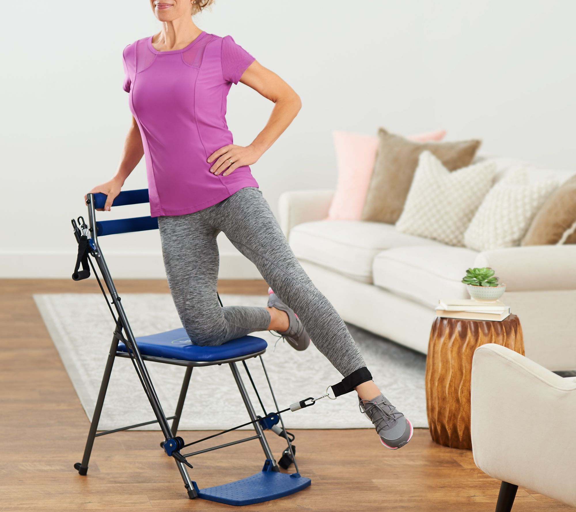A convenient, complete body workout, the Chair Gym helps to improve strength, flexibility, and energy levels all while sitting in a chair! Simple to set up, this foldable design offers three levels of resistance to carry you through your fitness journey.
