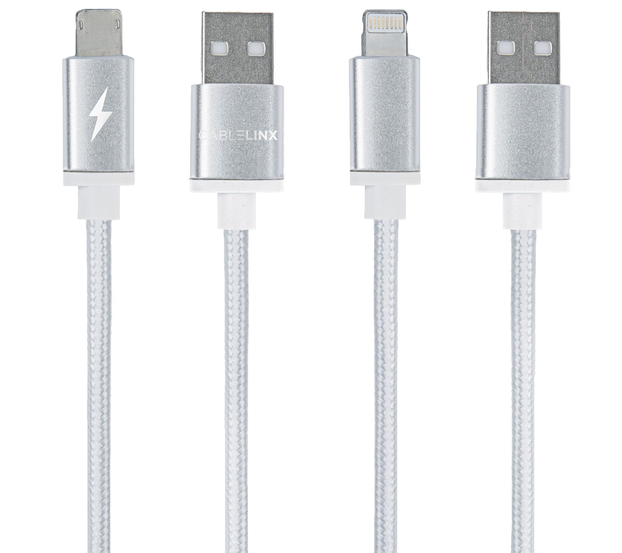 Includes two-port ChargeHub shareable USB charger, detachable four-port ChargeHub shareable USB charger, and two 36" cables with combo micro and lightning connectors