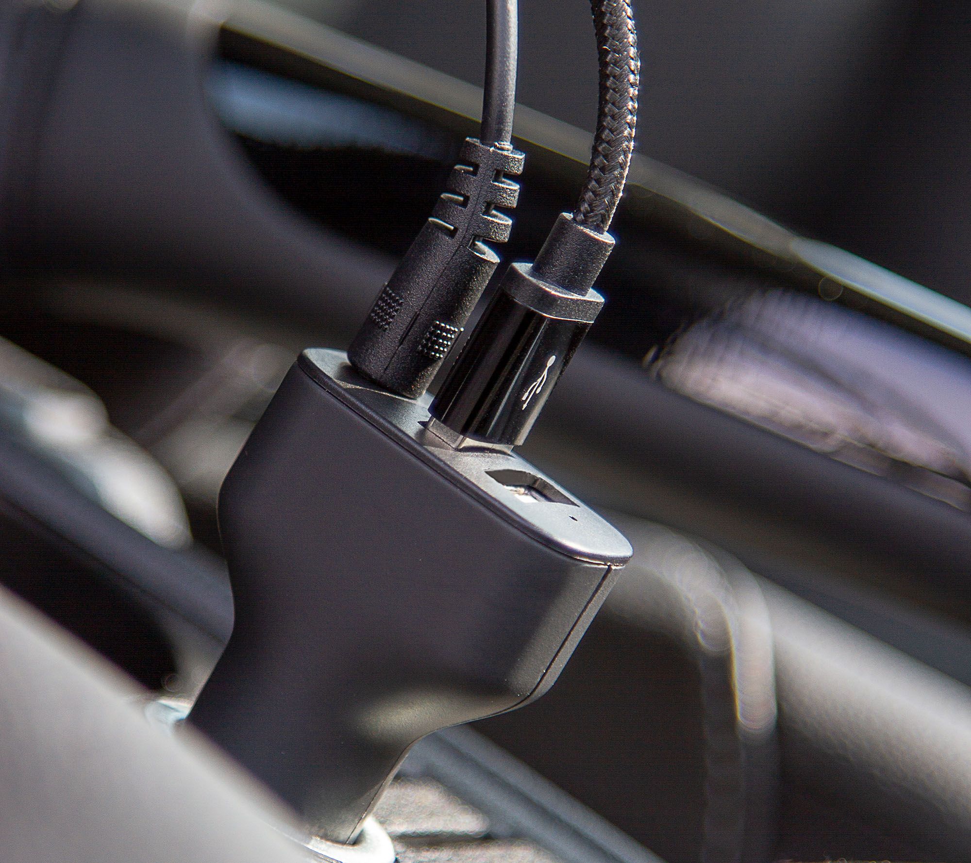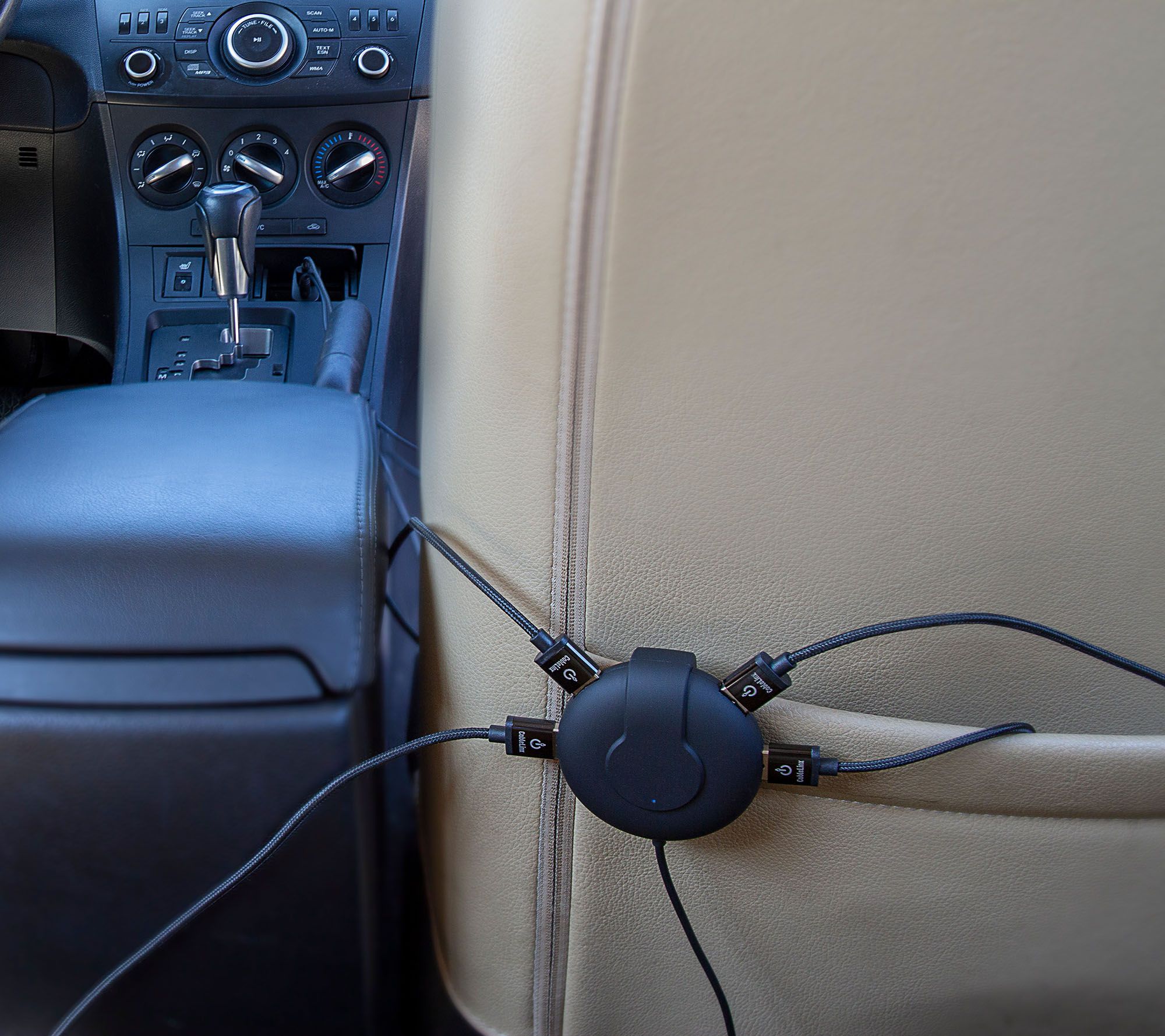 Four-port charger: clip to attach to seat