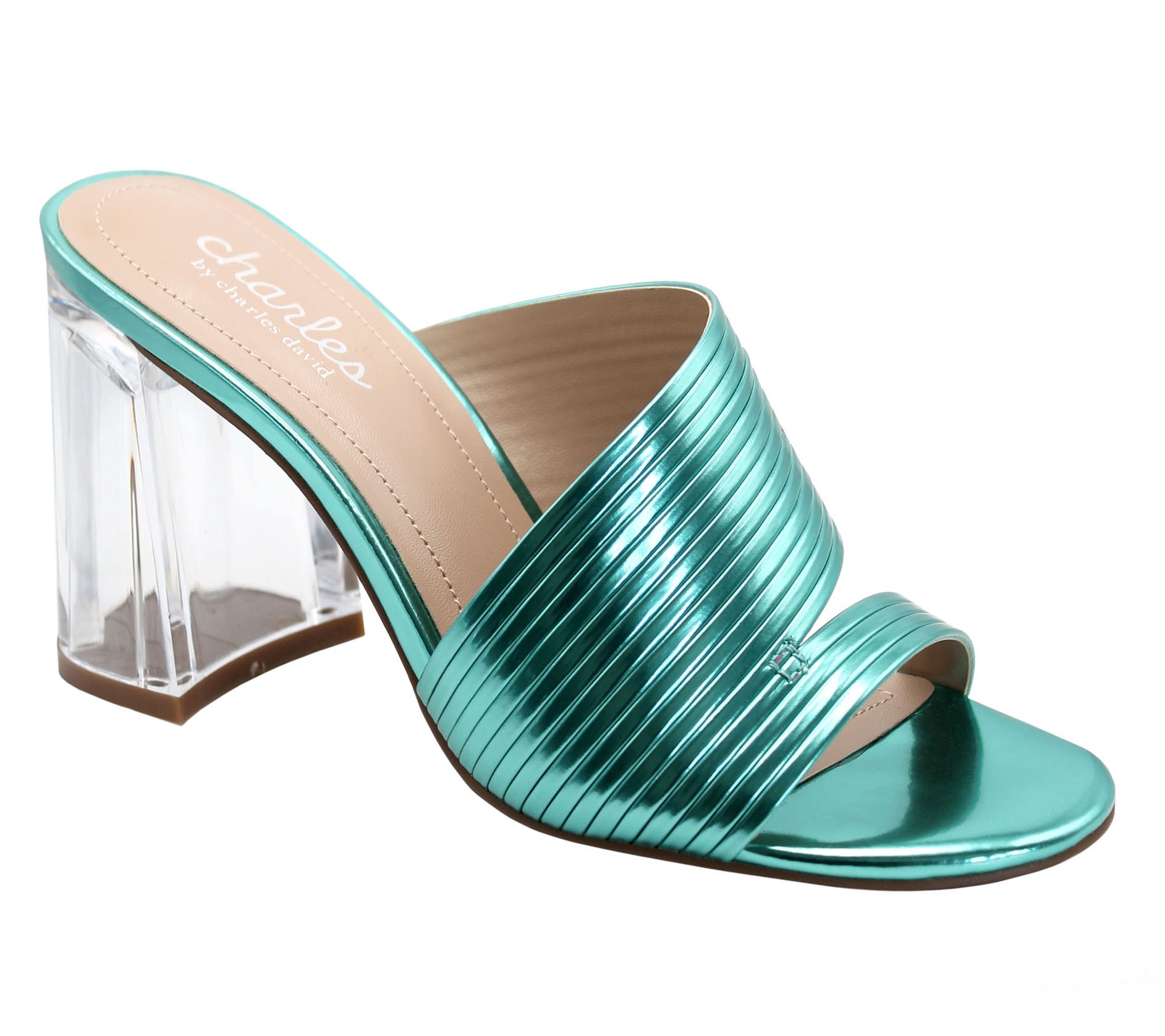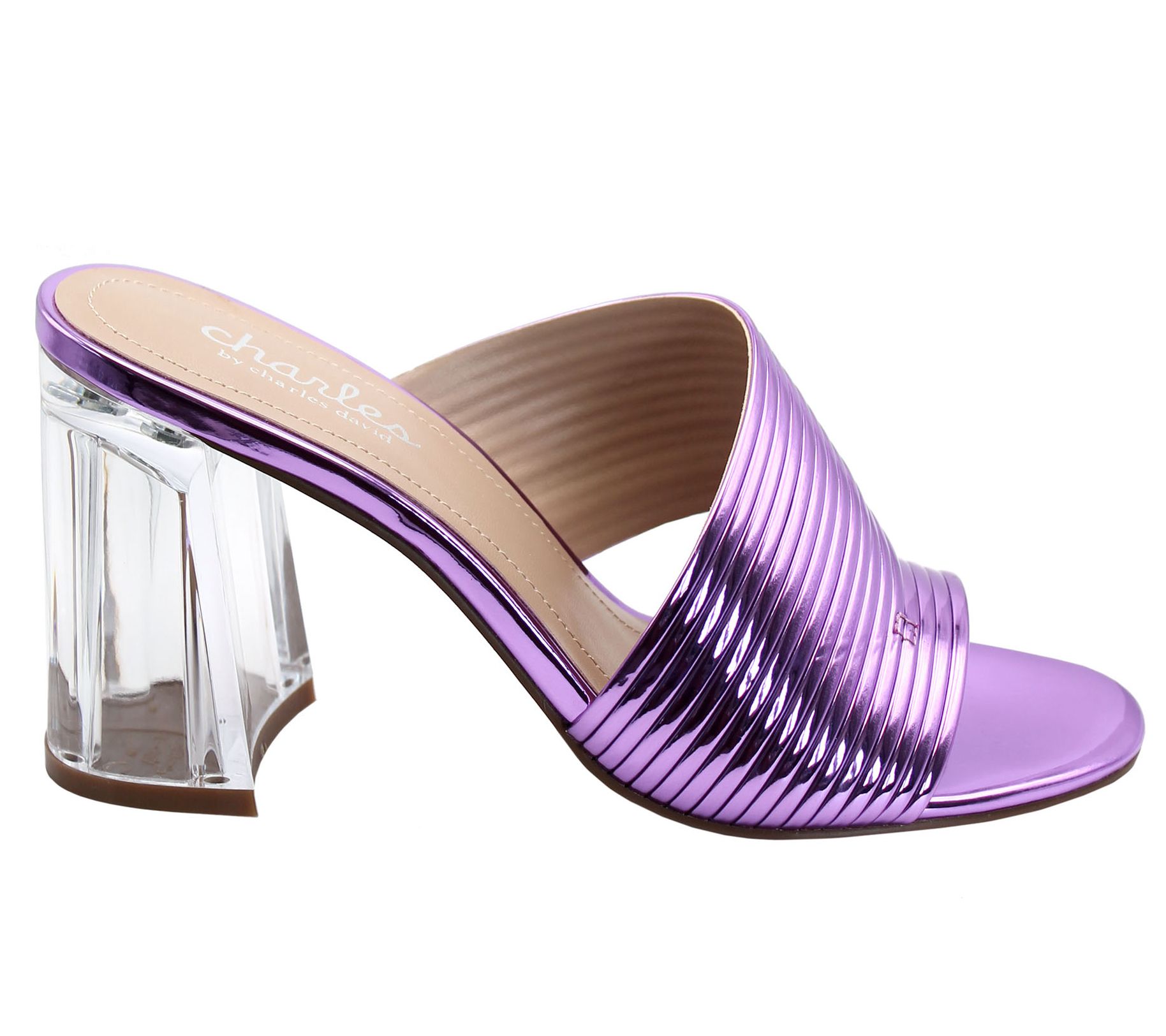A chic architectural heel heightens the style of this beautiful sandal, featuring an asymmetrical band with an elastic inset at one side, and a sleek profile that adds polish to your wardrobe. From Charles by Charles David.