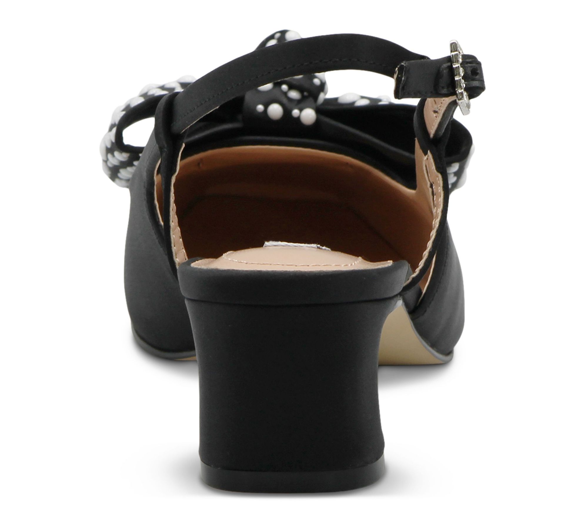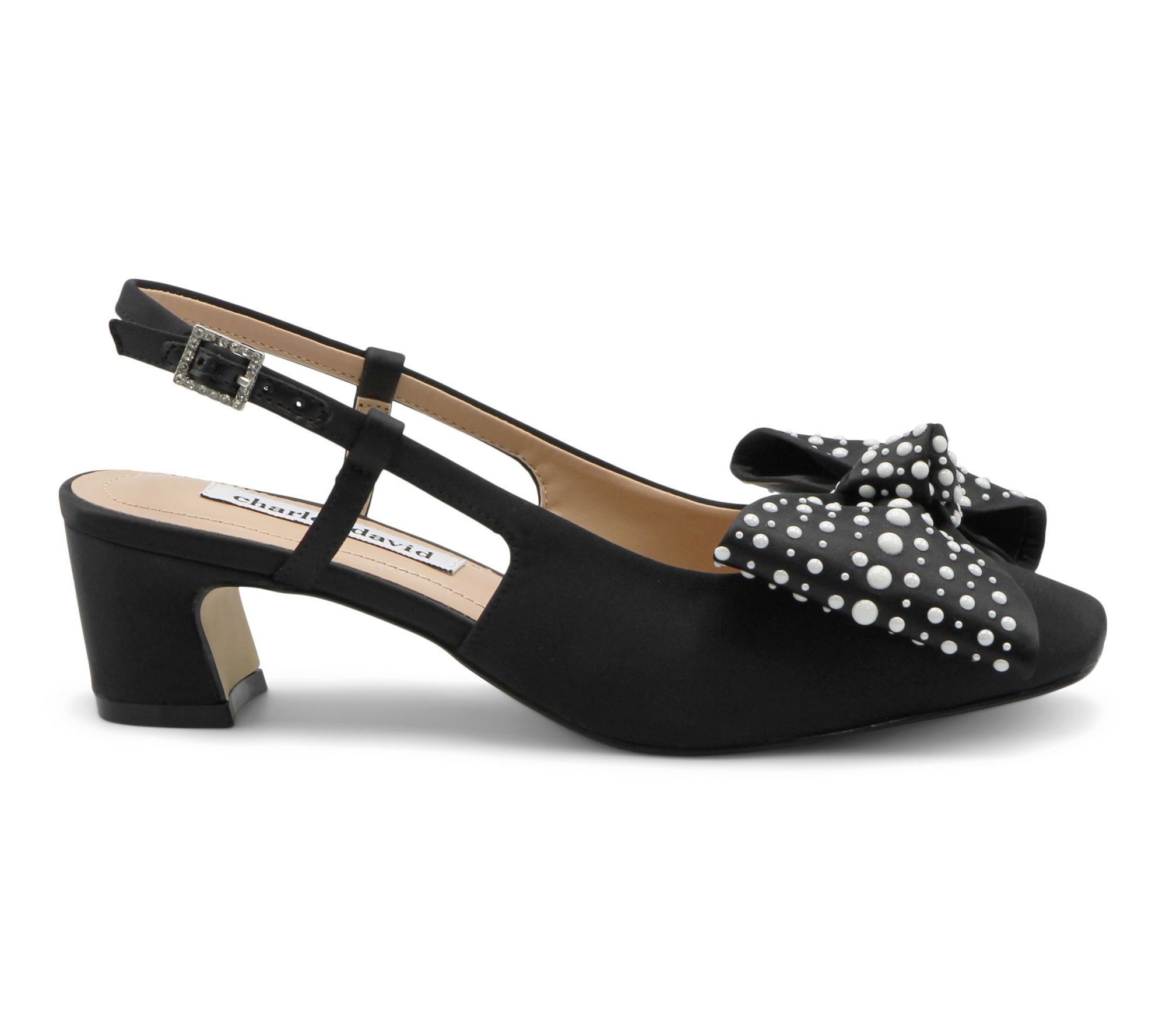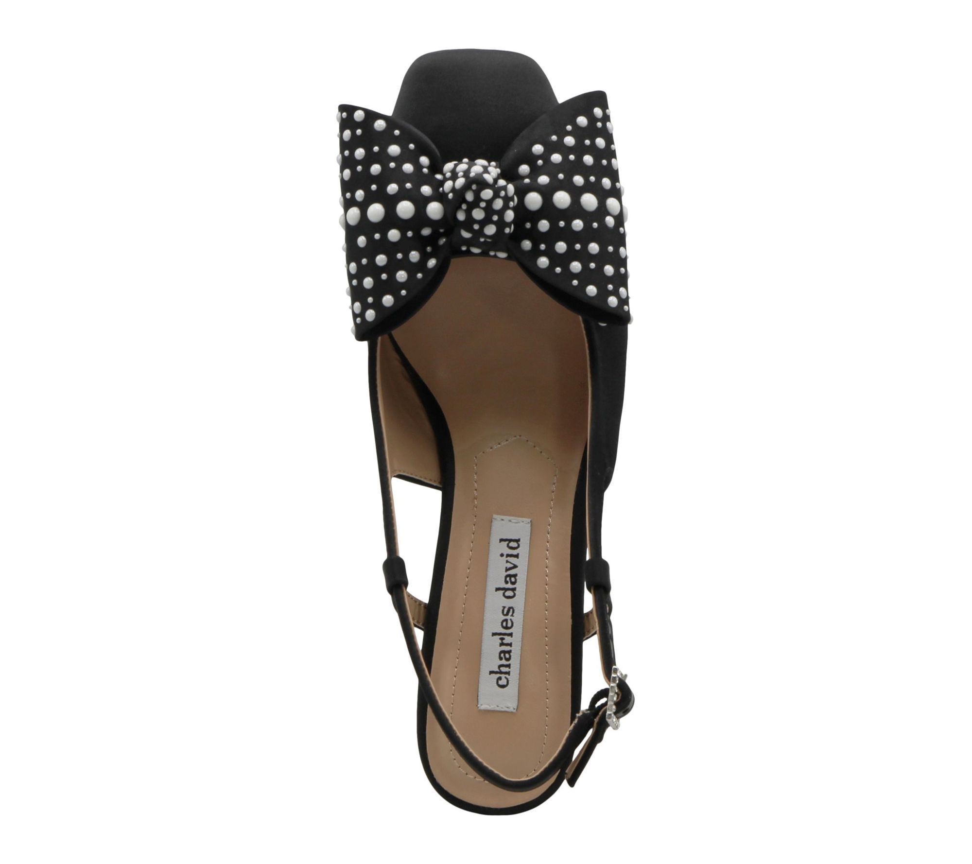 Grace any special event or add sparkle to an evening out with these Jackie slingback pumps, featuring a dazzling oversized bow adorned with faux pearl beads. The flattering square toe and slender adjustable strap deliver comfort and style, while the delicate details bring glamour to every step. From Charles David.