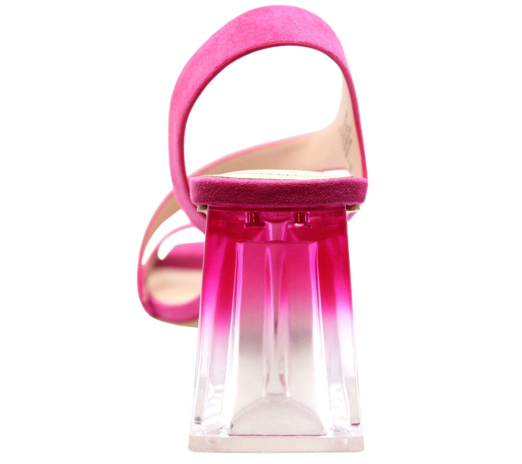 Slip-on style, asymmetrical strap, chunky sculpted heel, squared toe