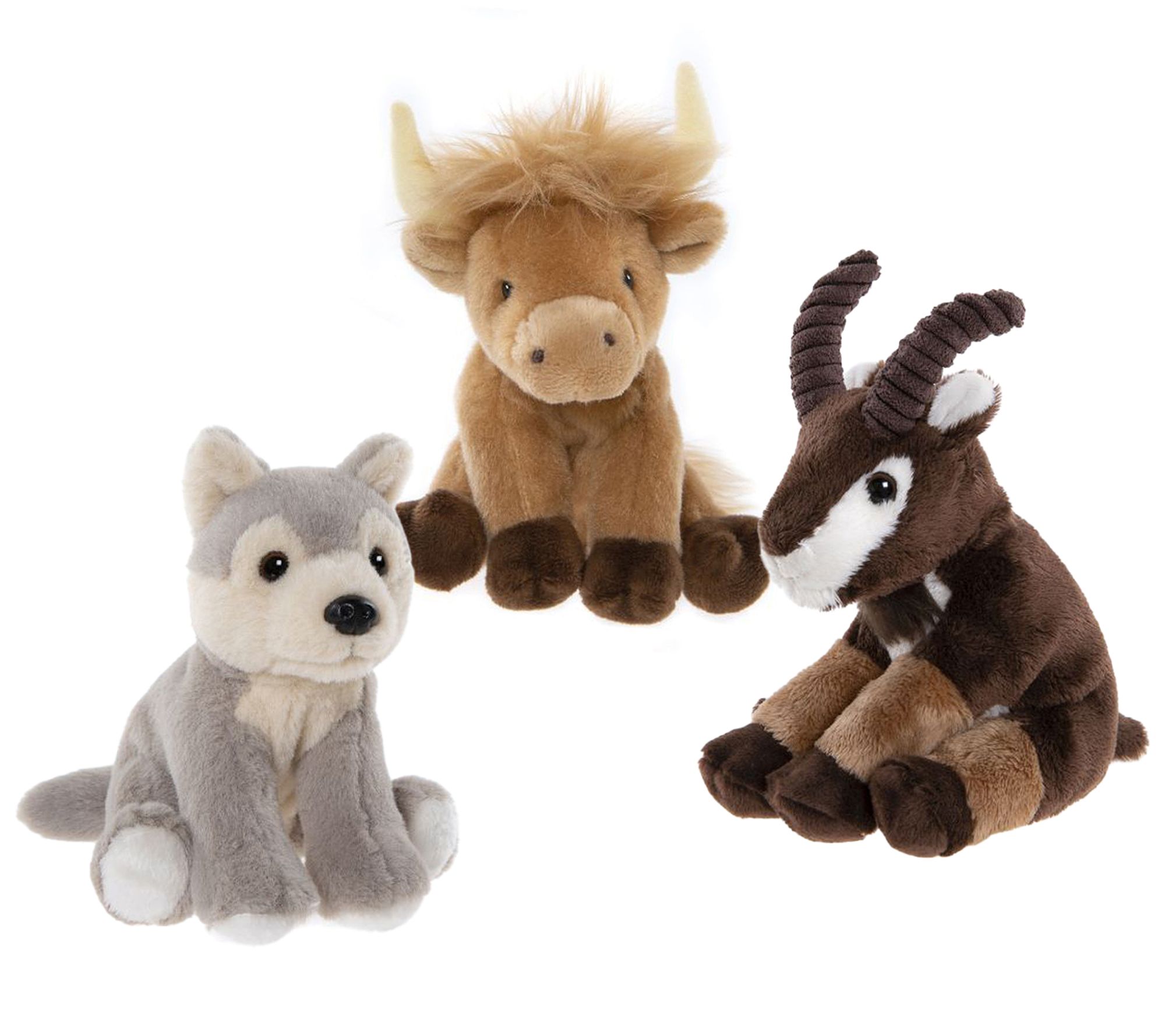 Charlie Bears Cuddle Cub Trio- Highland Cow, Wolf & Mountain Goat