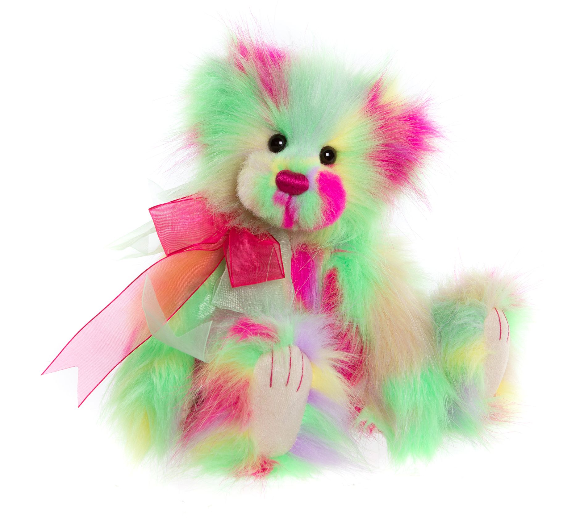Meet Stardust, a charming plush bear with long-pile fur and a cute bow accessory. This sweet bear is perfect for cuddling or showcasing in a collection. From Charlie Bears.