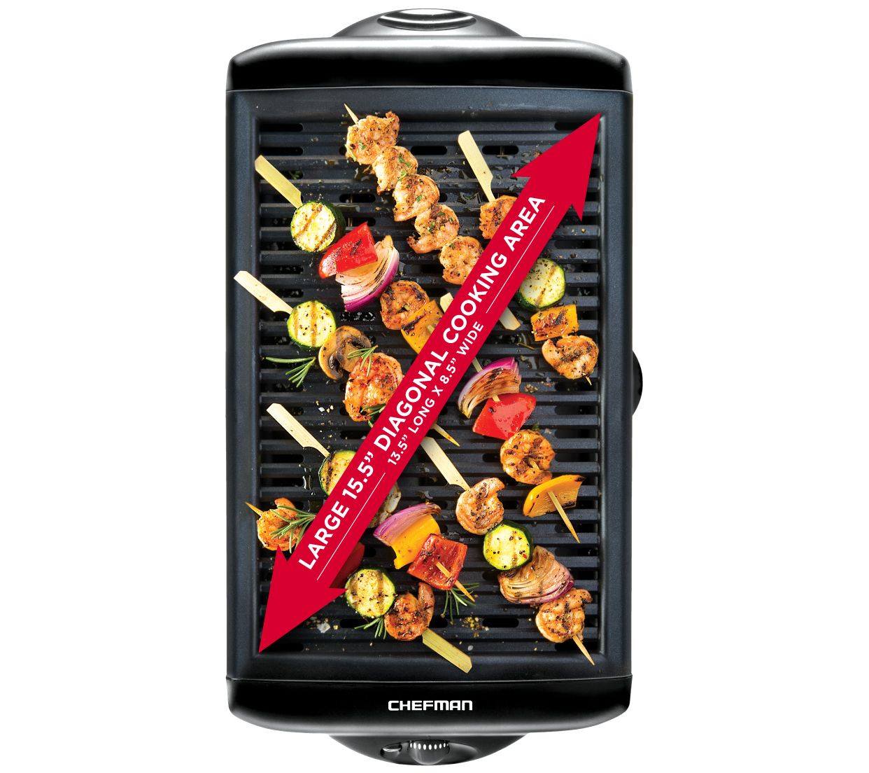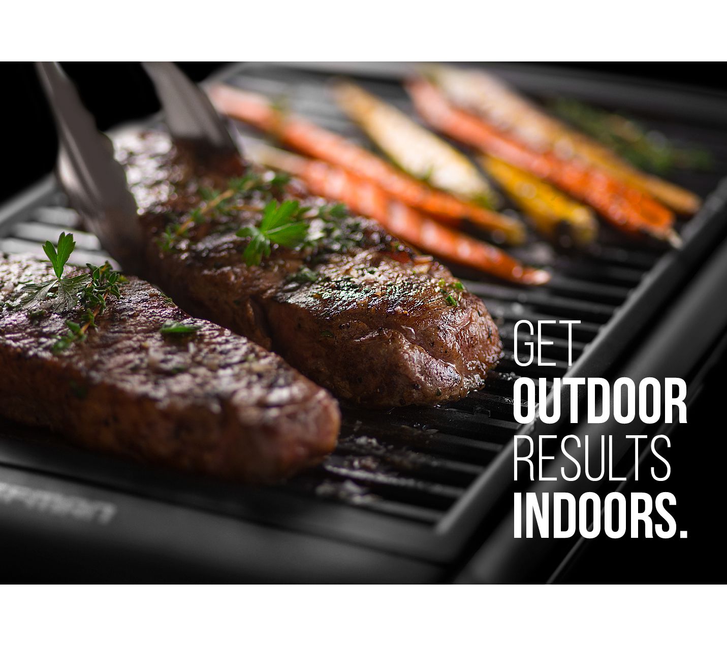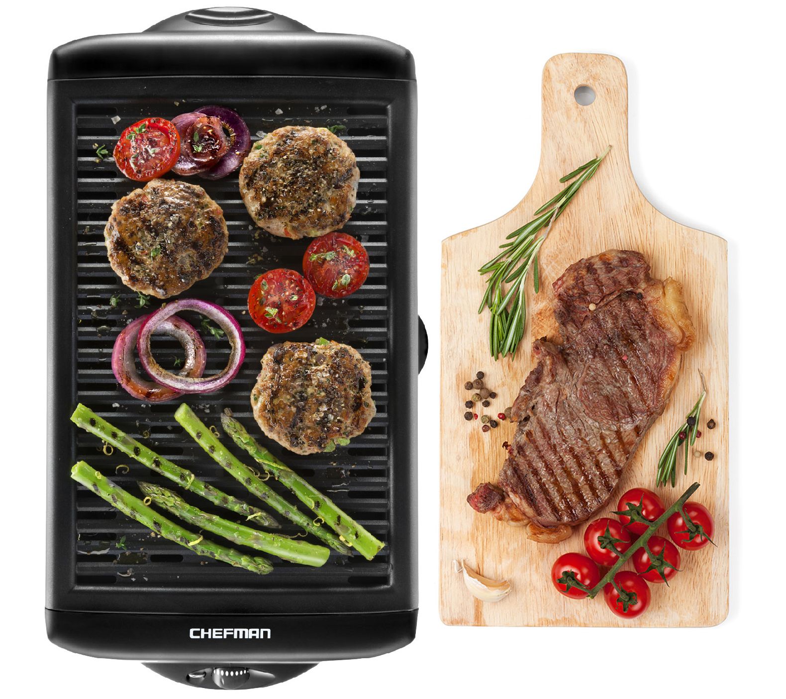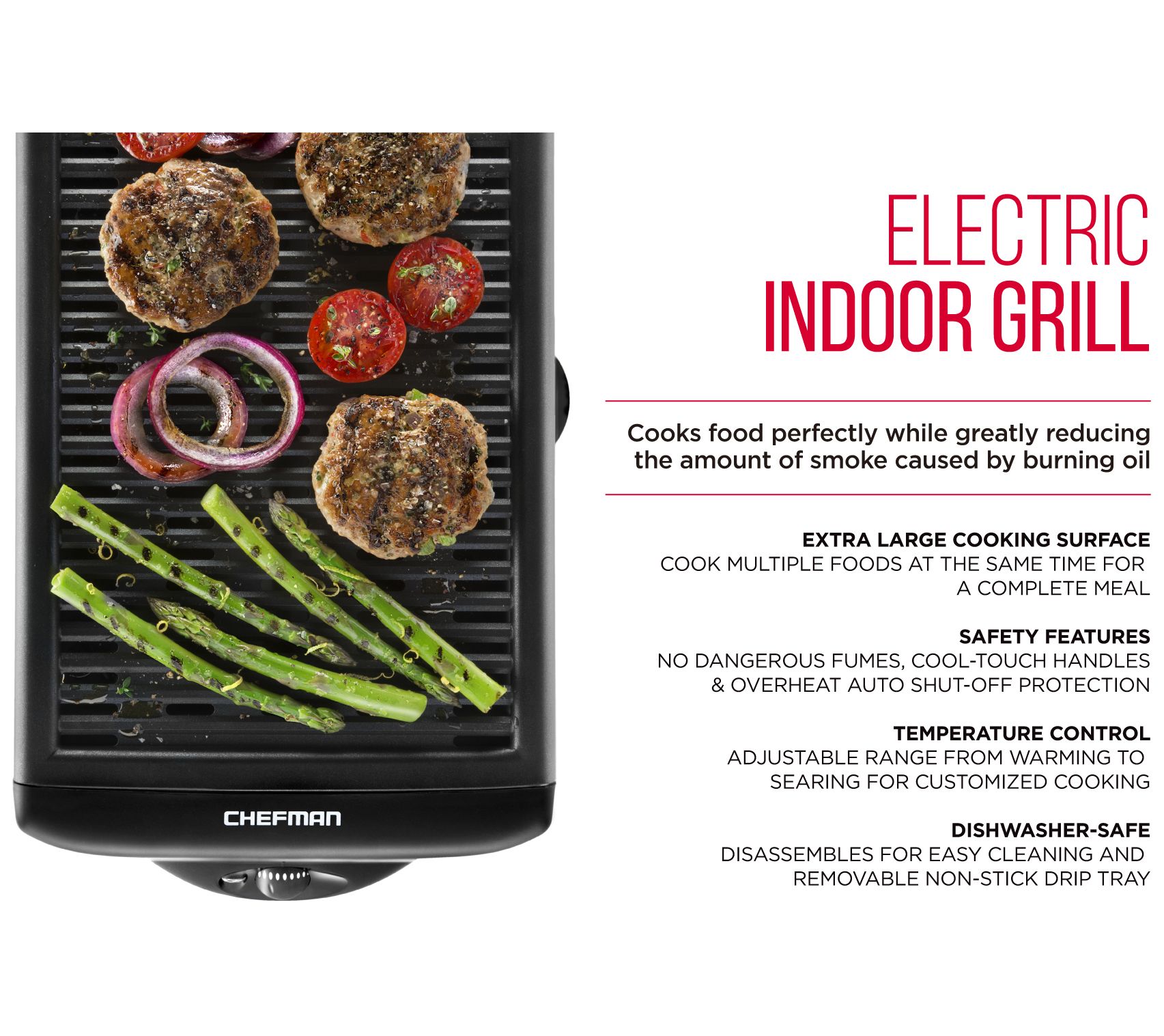 Get barbecue taste and authentic flavor on your steaks, chicken, and veggies with this electric smokeless indoor grill. From Chefman.