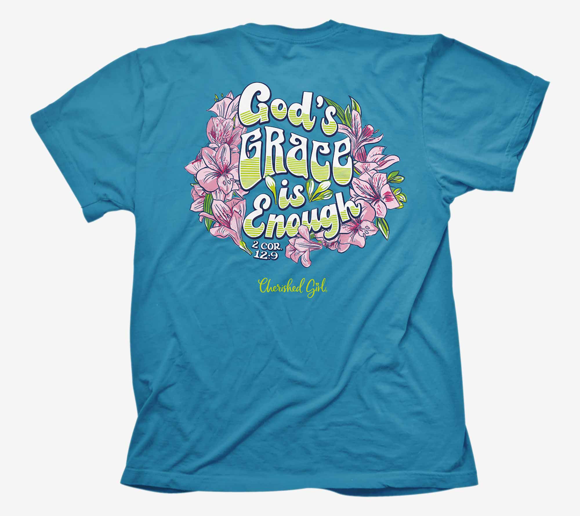 Showcase your faith and style with the Cherished Girl adult tee - Grace Enough. Crafted from 100% cotton, this classic fit tee offers a seamless double needle collar and taped neck and shoulders for ultimate comfort. From Cherished Girl.