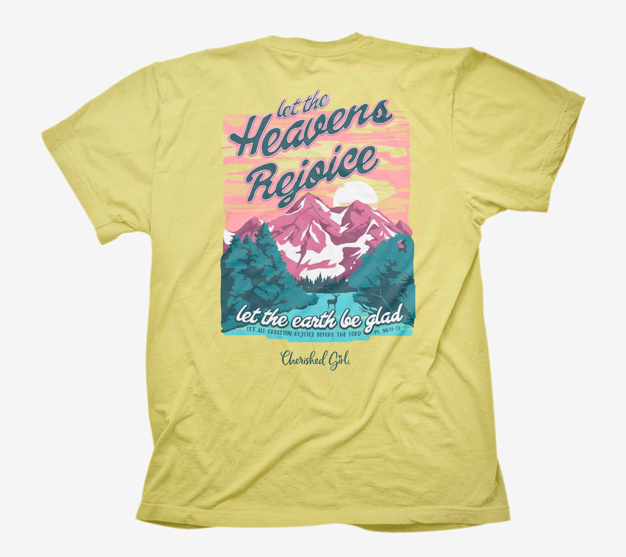 Cherished Girl's adult T-shirt, "Heavens Rejoice," offers a comfortable and stylish fit for any casual day. With its crew neckline and relaxed fit, this tee is perfect for layering or wearing on its own. From Cherished Girl.