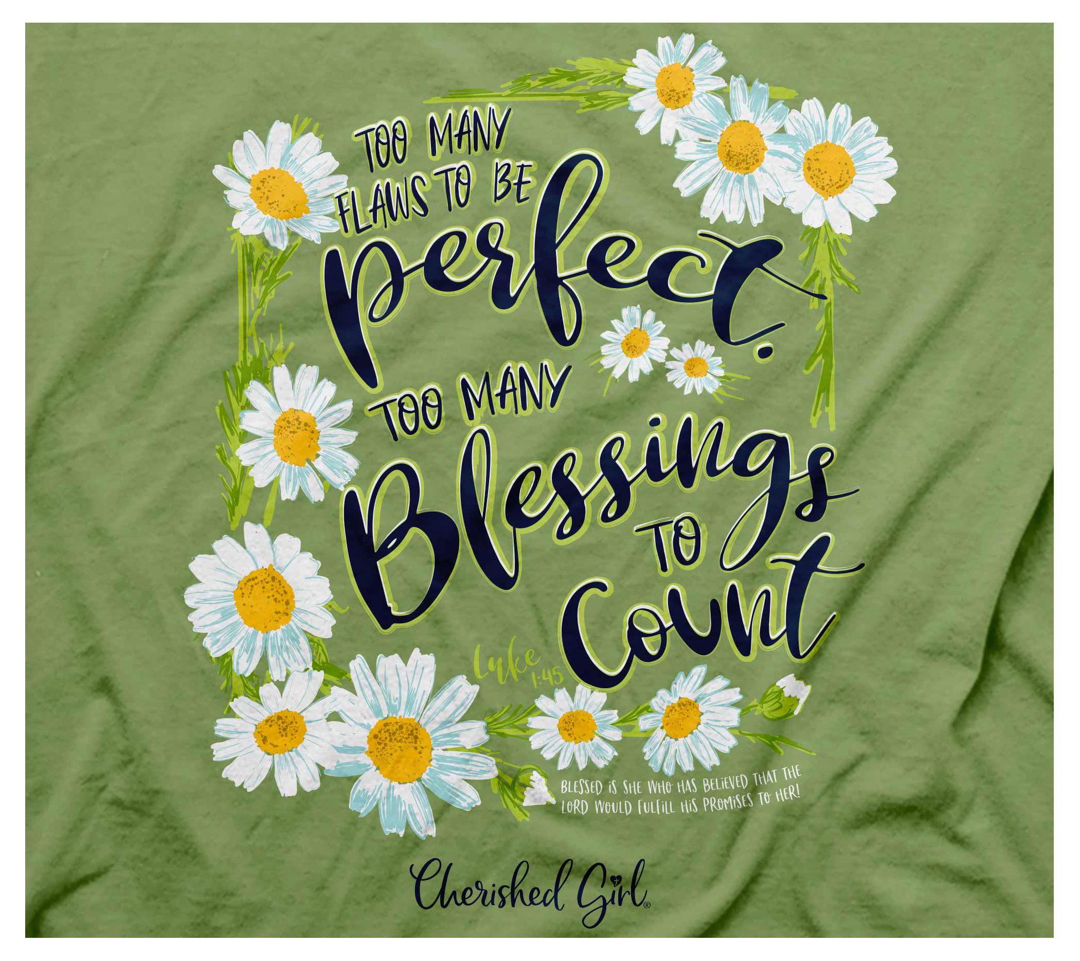 Cherished Girl's "Too Many Blessings" adult tee is perfect for a casual day out. Made from 100% cotton, this relaxed-fit shirt offers comfort and durability with its taped neck and shoulders and double-needle stitching at the sleeve and bottom hem. From Cherished Girl.