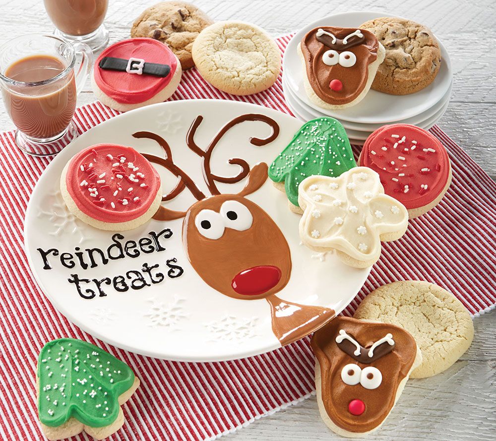 This delightful dozen of fun holiday cookies comes to you with a cute reindeer plate, making sharing or serving simple and sweet. From Cheryl's.