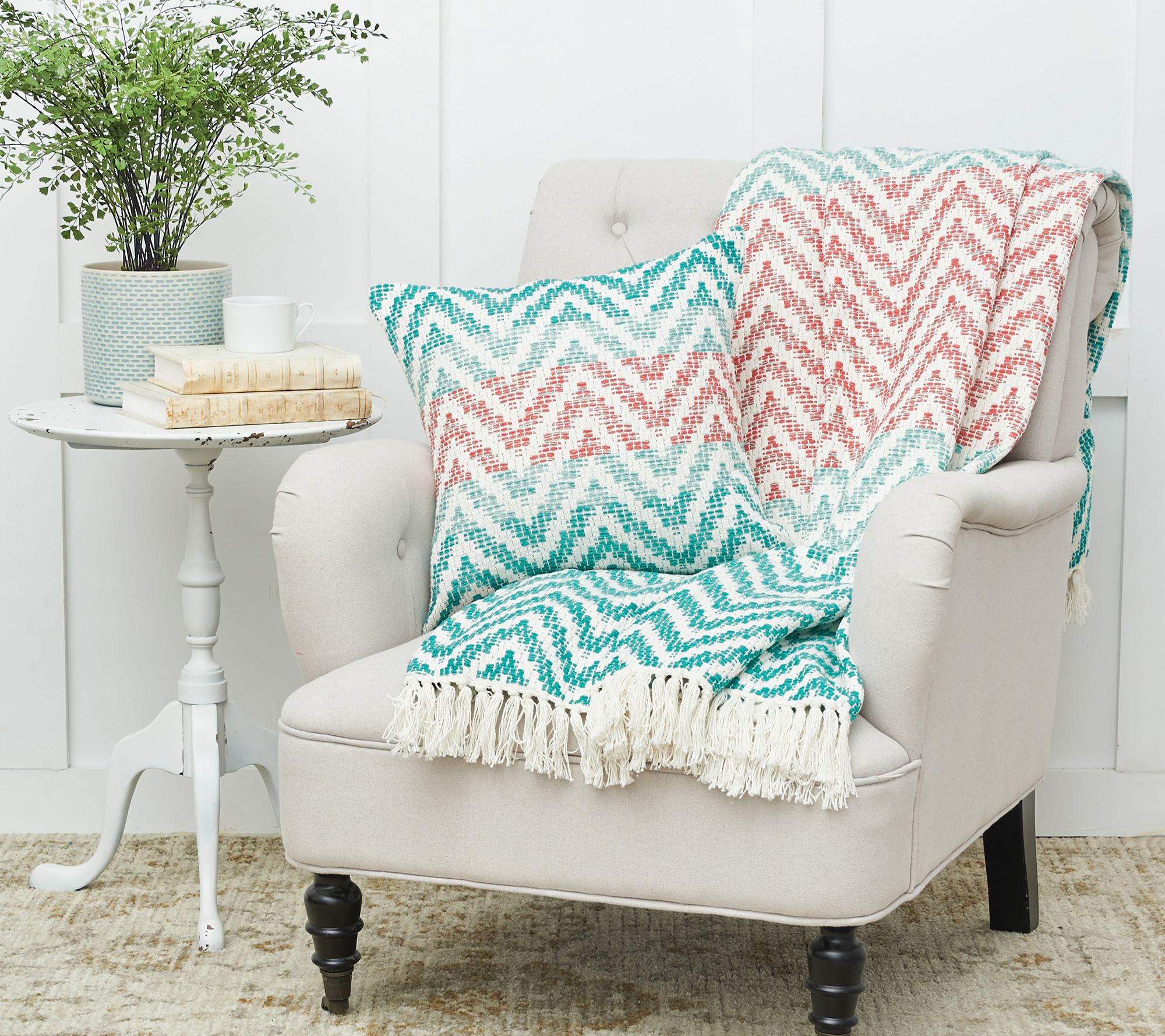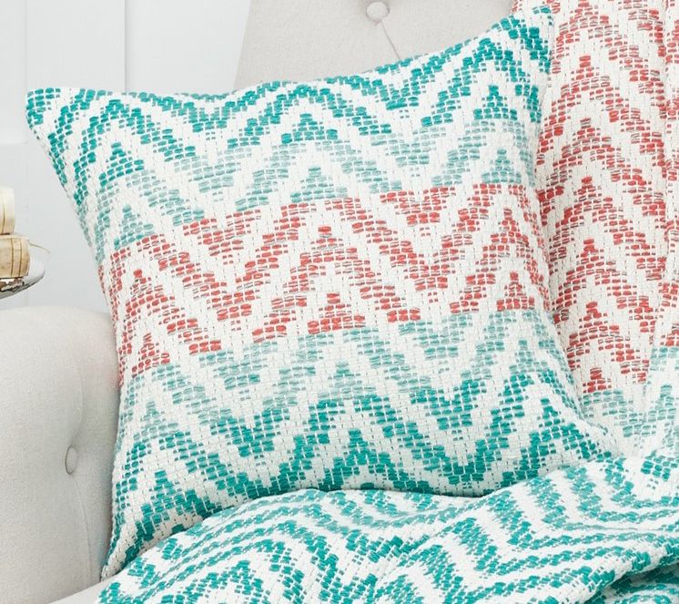 Beautiful beachy colors and a classic chevron pattern make this throw pillow the perfect accent for your casual living space. It's an easy way to add comfort and style. From C&F Home.