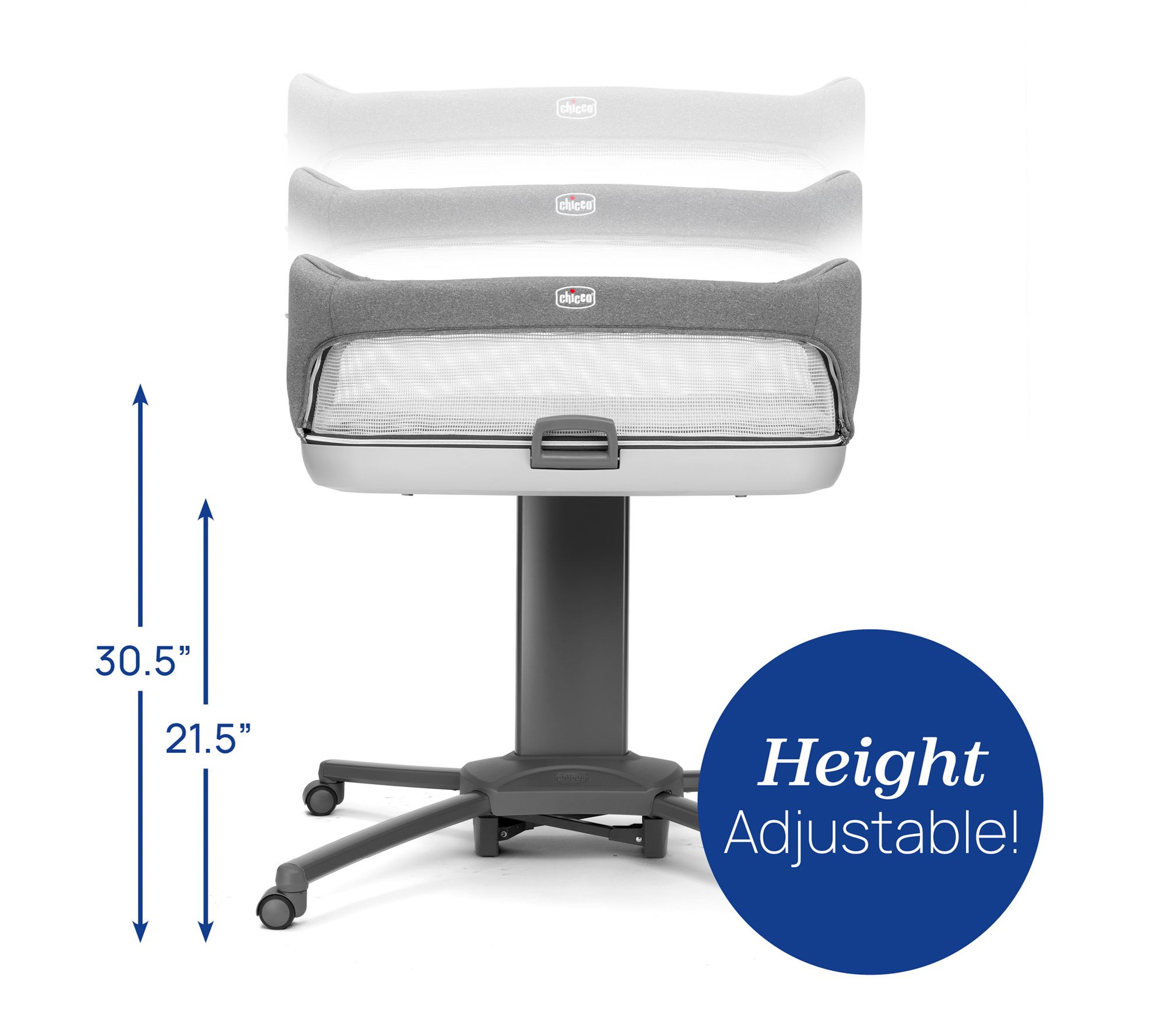 • Height adjustable: 24" - 33.5" from floor to bottom of bassinet