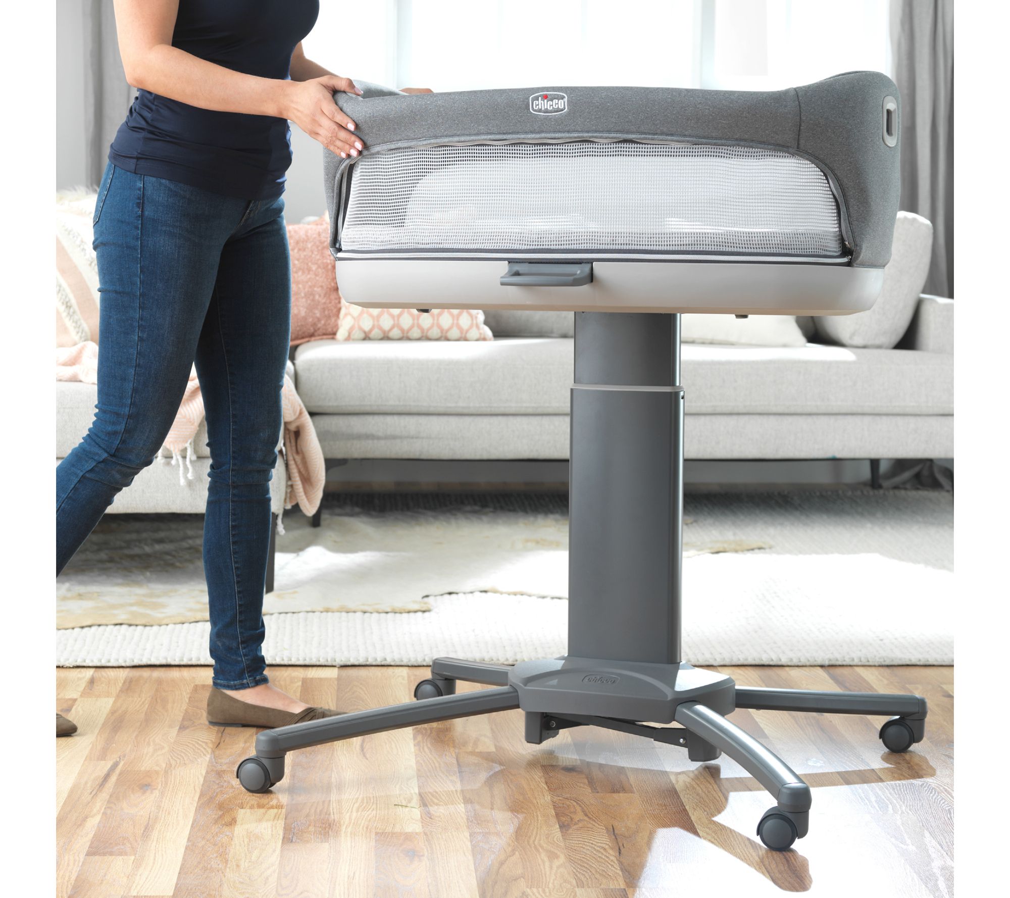 Get more from your bassinet with the Chicco Close to You 3-in-1 bedside bassinet. This bedside sleeper and portable bassinet conveniently converts to a height-adjustable changing station for extended use up to 35 lbs. Swivel wheels, mesh side panels, and a range of height adjustment allow baby to be as close to you as possible while sleeping in their own comfortable space. From Chicco.