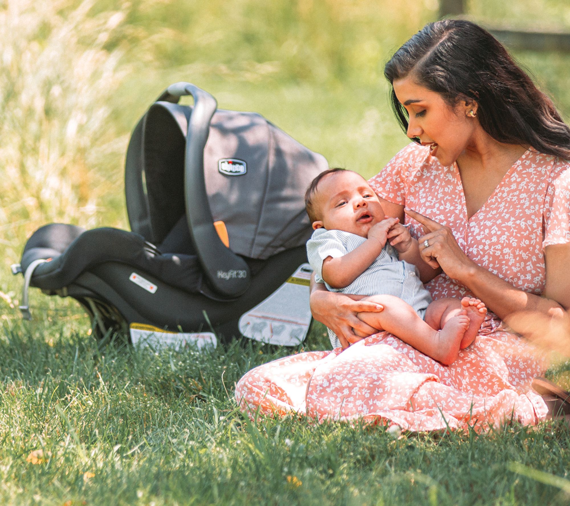 Lightweight carrier clicks into compatible Chicco strollers, not included