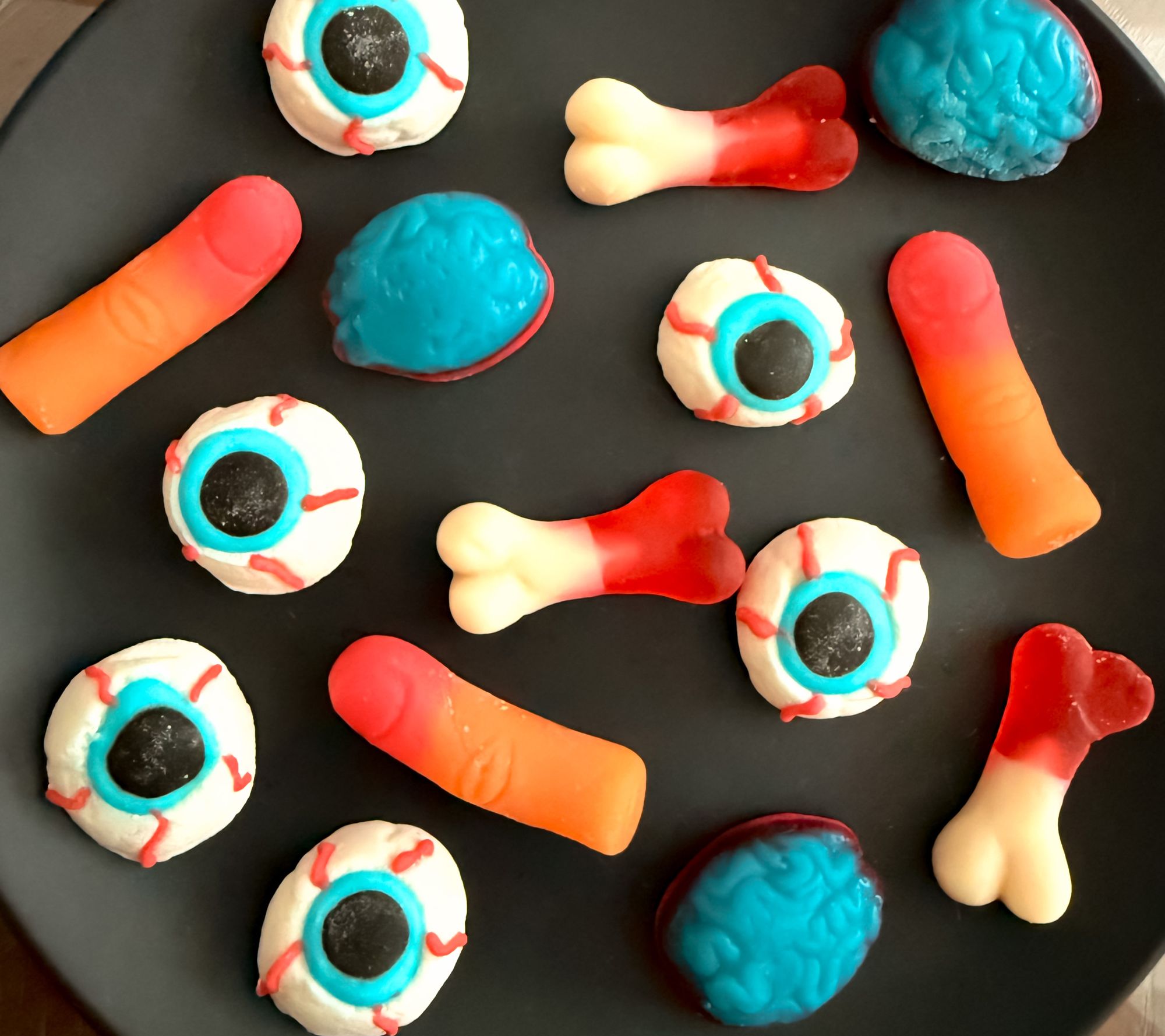 • Includes gummy eyes, brains, bones, and fingers
