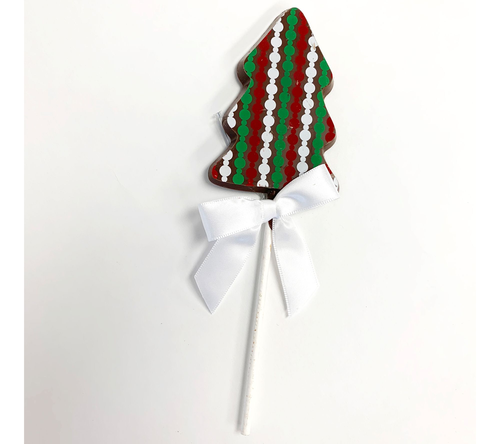 Sweeten the season with an unexpected tree-t! These patterned Belgian chocolate Christmas tree lollies make delicious gifts for everyone on your list. From Chocolate Works.