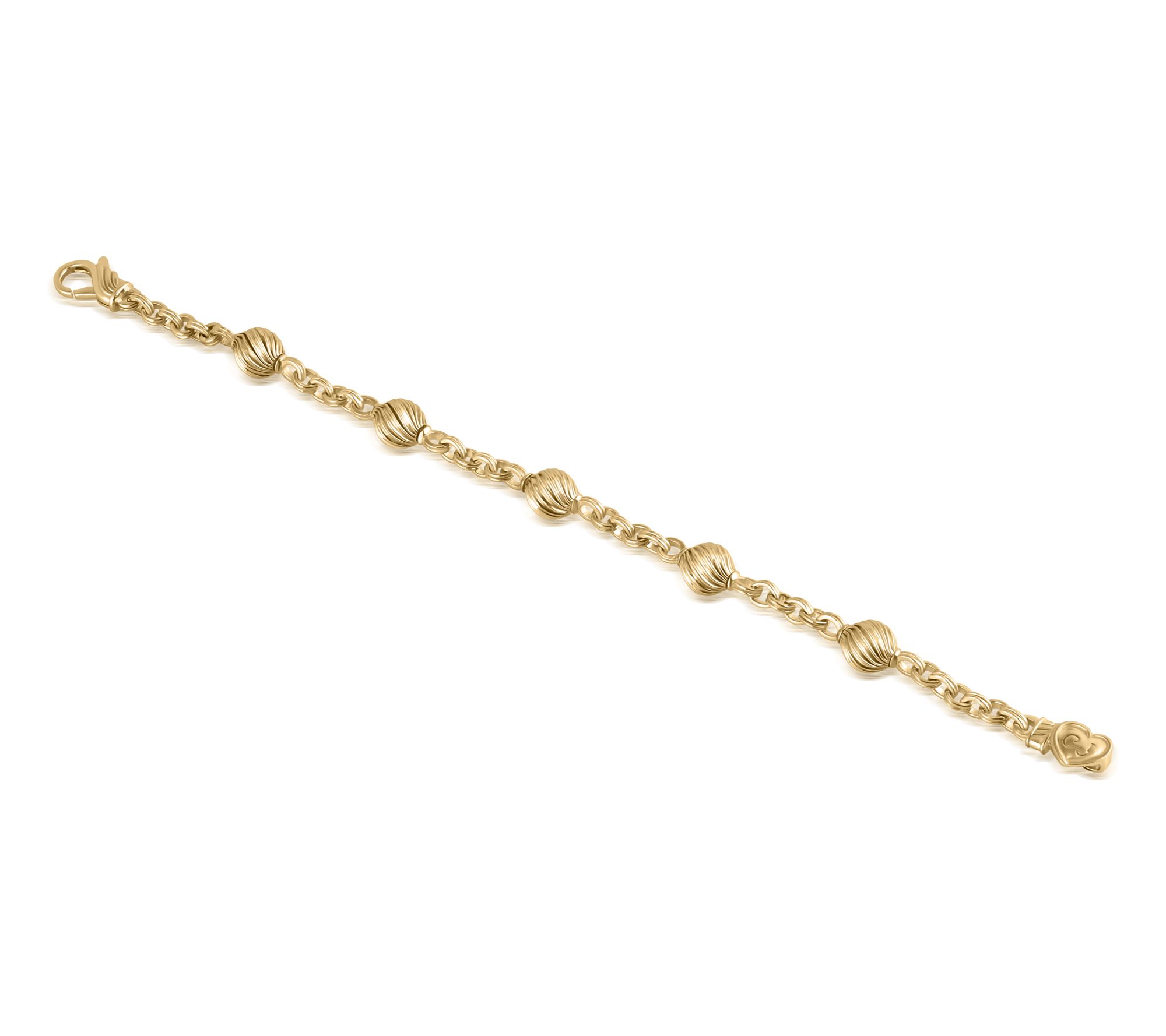 If you only have time to slip on one accessory today, make it this bead station bracelet in 14K gold clad sterling silver. With intriguing ribbing and delicately oxidized rolo link chain, it creates an incredibly rich look with simple and dramatic outfits alike. From Christian James by Scott Grimes.