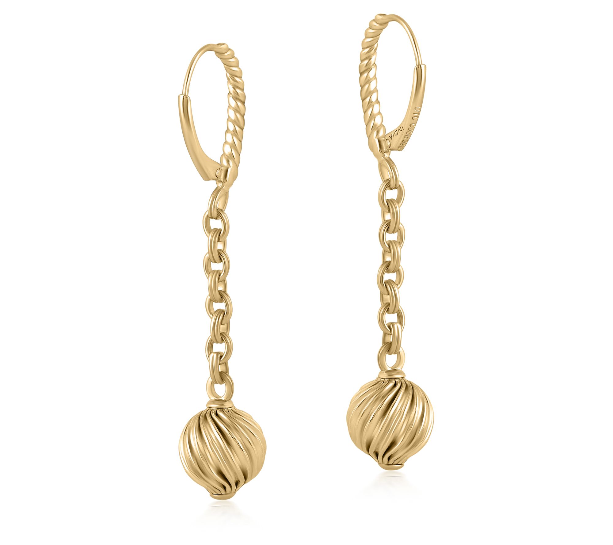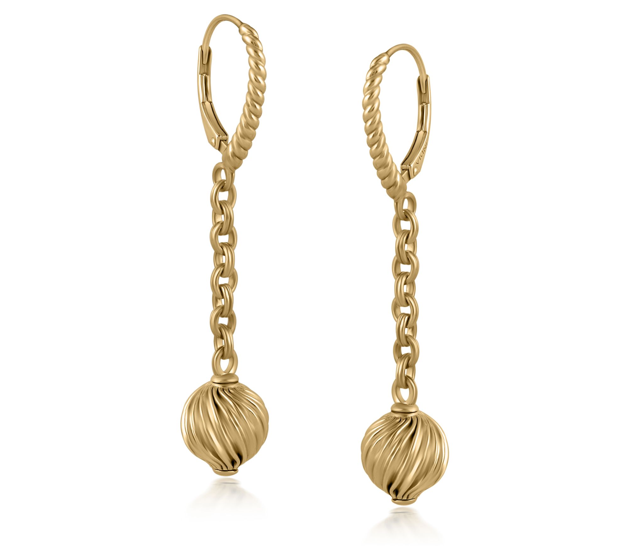 Add some delightful dangle and trend-right texture to any outfit with these luxurious lever back earrings -- exquisitely designed with a round ribbed bead attached to a rolo link chain. From Christian James by Scott Grimes.