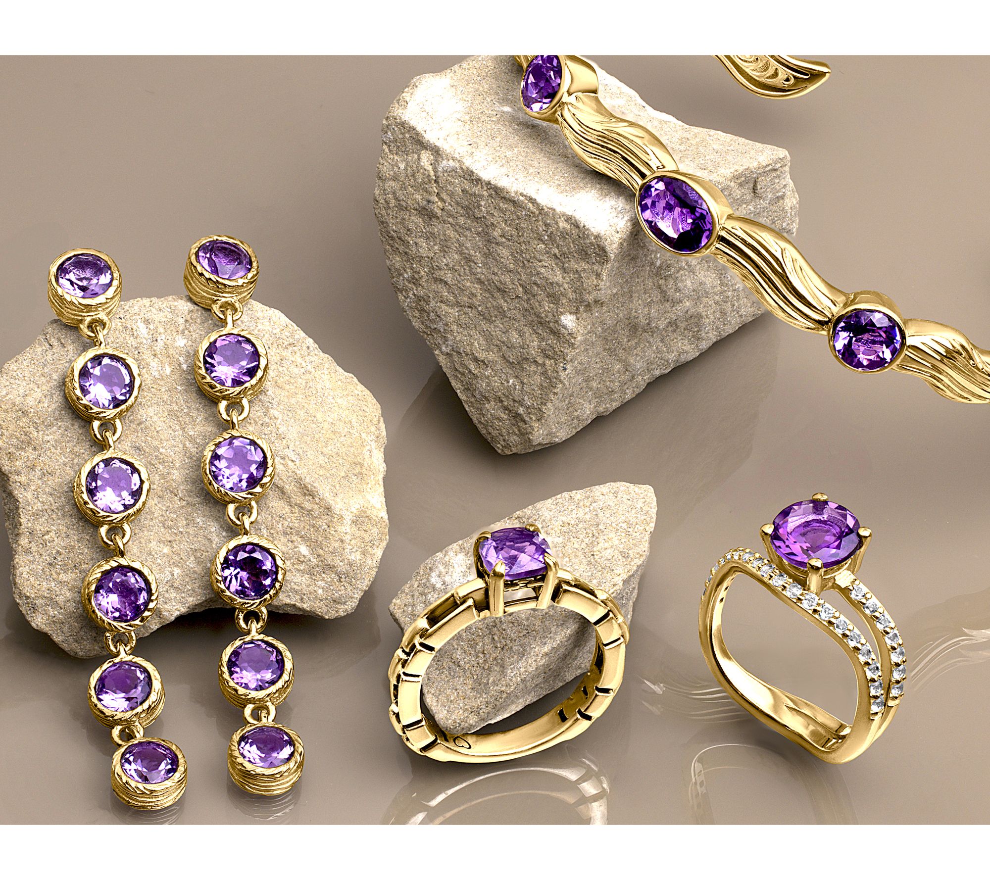 Total gemstone weights are approximate: African Amethyst 4.75 carats; Swiss Blue Topaz 6.65 carats; Madeira Citrine 4.35 carats