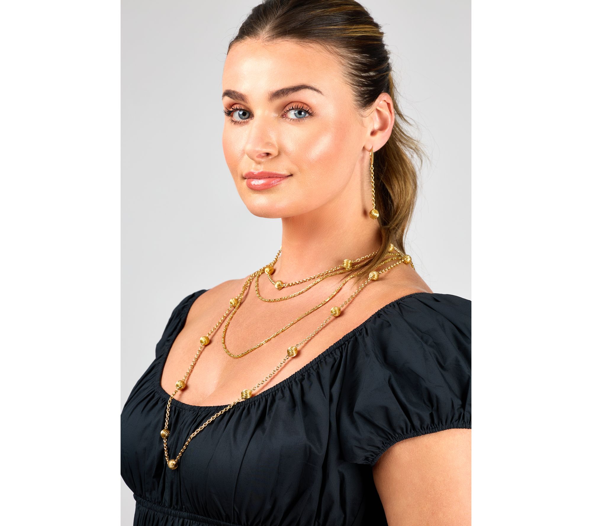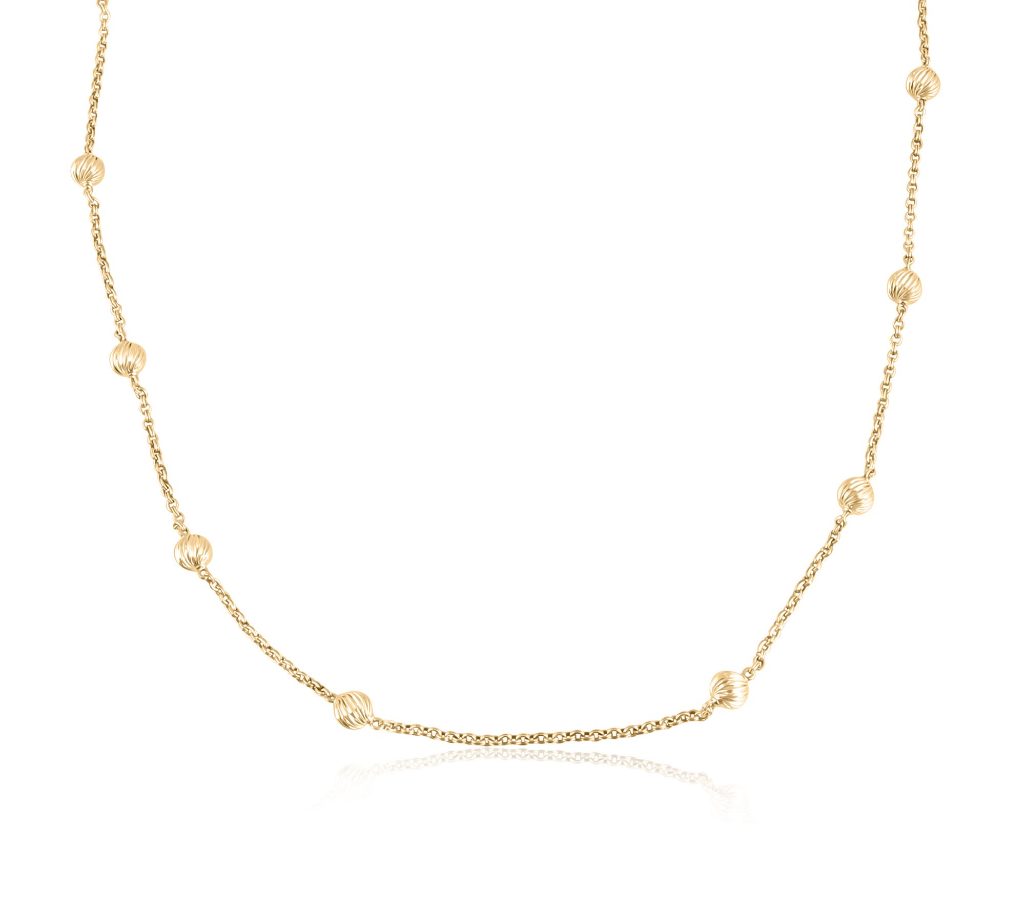 Take your daily look to the next level with this bead station necklace, crafted in 14K yellow gold-clad sterling silver. Whether paired with casual or dressy outfits, its ribbed beads and oxidized double rolo link chain create a beautifully rich aesthetic. From Christian James by Scott Grimes.
