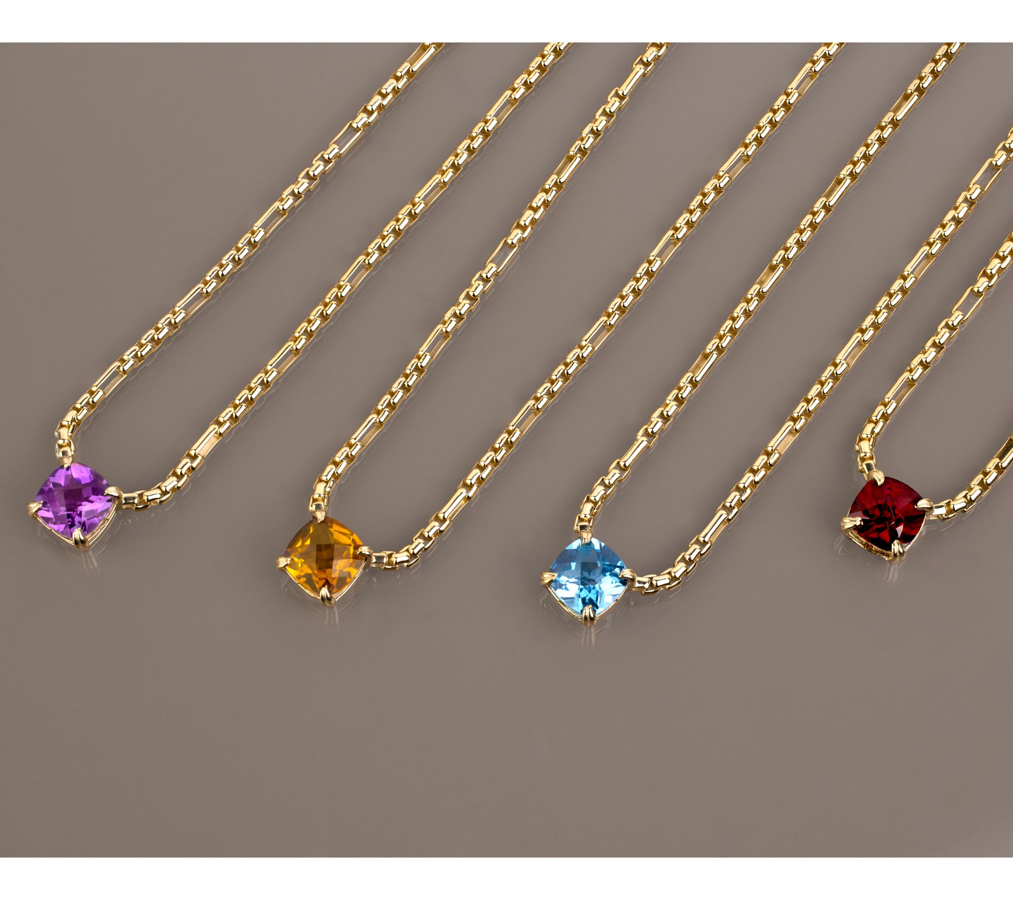 Total gemstone weights are approximate: Amethyst 2.99 carats; Blue Topaz 3.77 carats; Garnet 3.78 carats; Citrine 3.03 carats